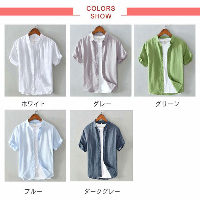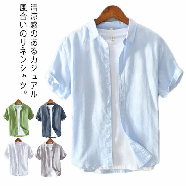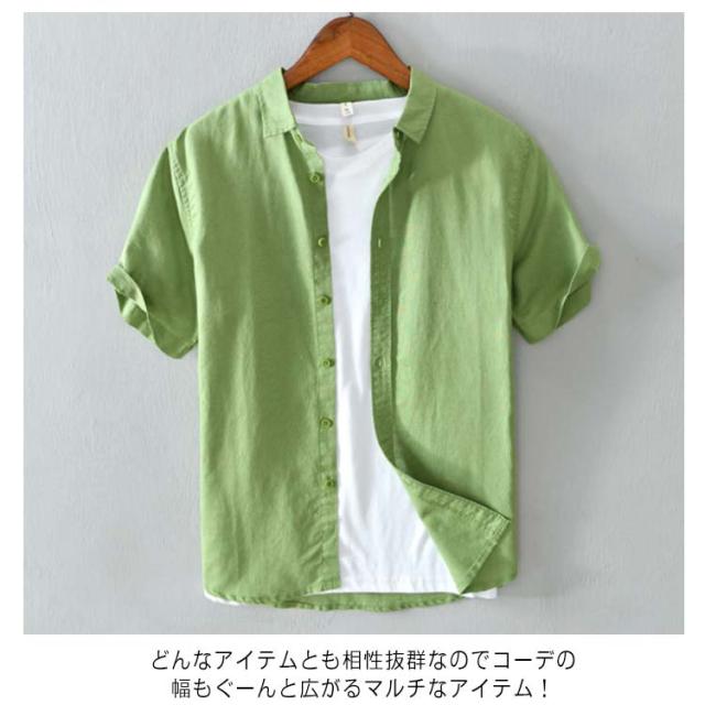 半袖シャツ メンズ リネンシャツ メンズシャツ 夏 涼しい シャツ カジュアルシャツ 薄手 麻 リネン 綿麻 通気性 綿麻シャツ 無地 シンプル おしゃれ カジュアル ビジネス 夏服 半袖 トップス 送料無料