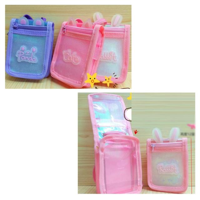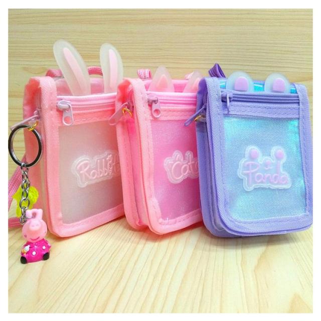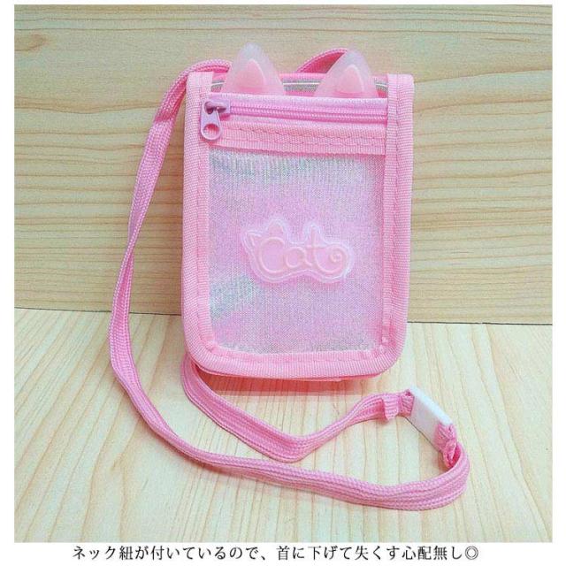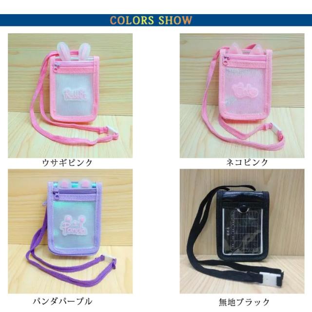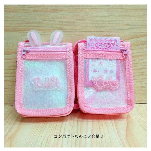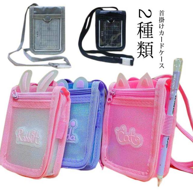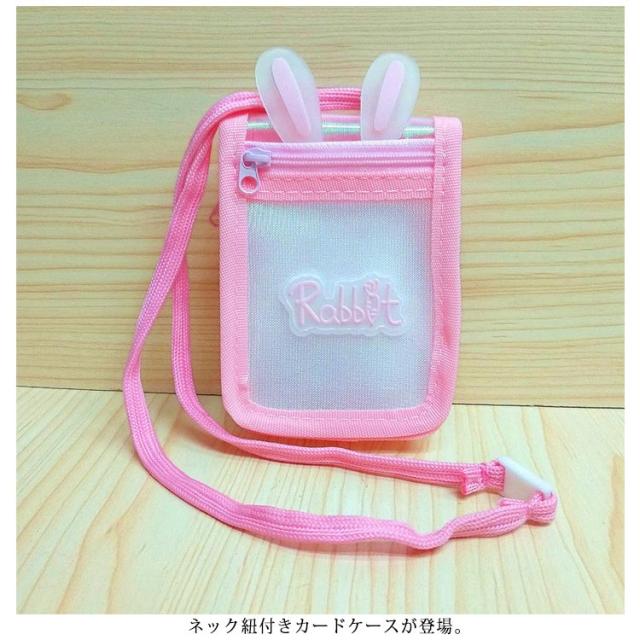 カードケース ネック紐付き 女の子 男の子 子供用 小銭入れ コインケース ウサギ耳 透明 カードケース 定期入れ 可愛い ピンク 男の子 女の子 送料無料