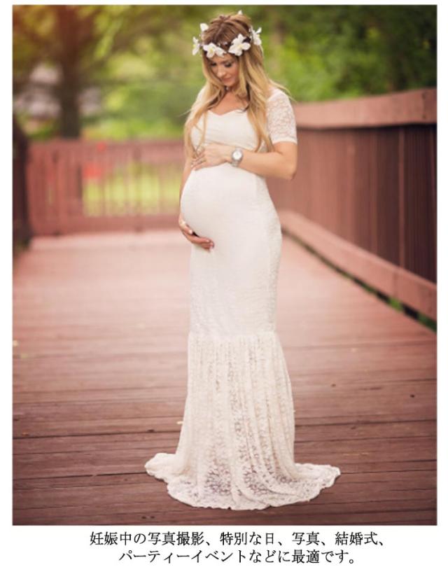 ワンピース マタニティドレス マーメード マタニティフォト 妊婦 マタニティ フォト 写真 撮影 ドレス レース ロングドレス ウェディング 結婚式 ストレッチ 伸縮性 フォーマル 記念写真 ロングトレーン 【送料無料】