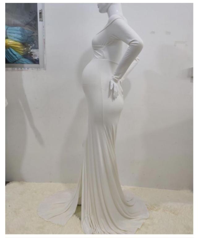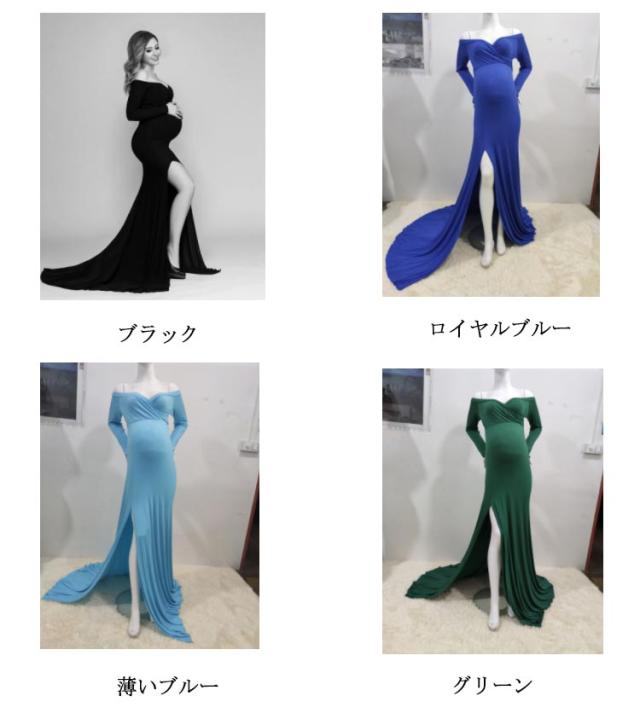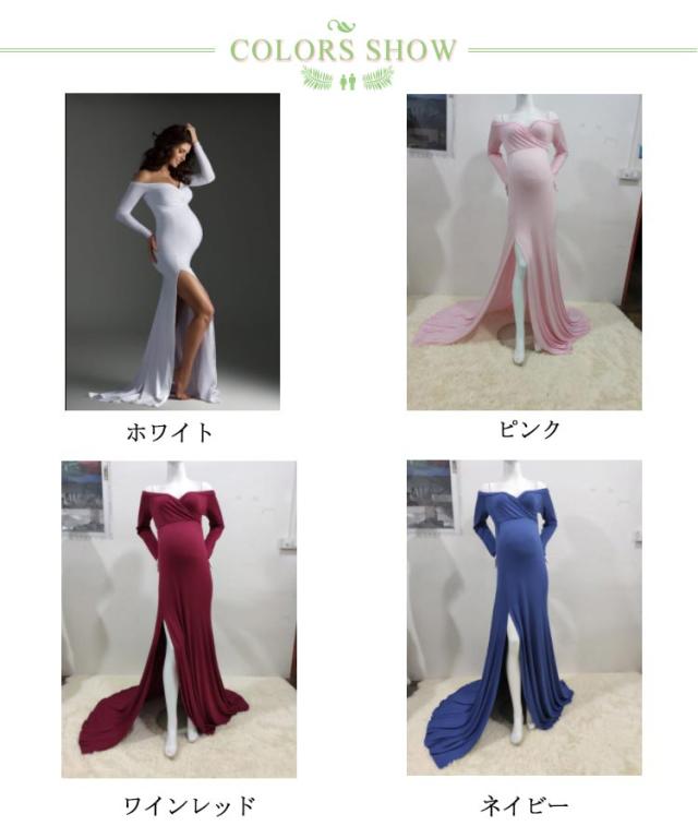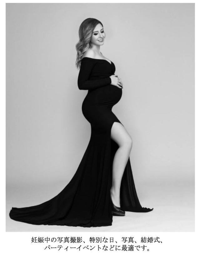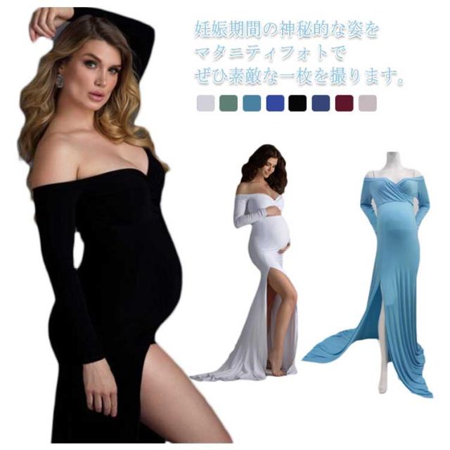 マタニティ ワンピース ドレス スリット タイト 伸縮性 マタニティフォト 妊婦 マタニティ 写真 撮影 ドレス 長袖 オフショルダー ウェディング 結婚式 ストレッチ フォーマル 記念写真 ロングトレーン【送料無料】