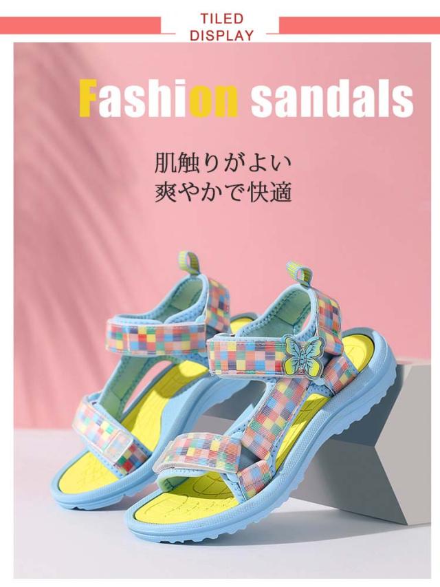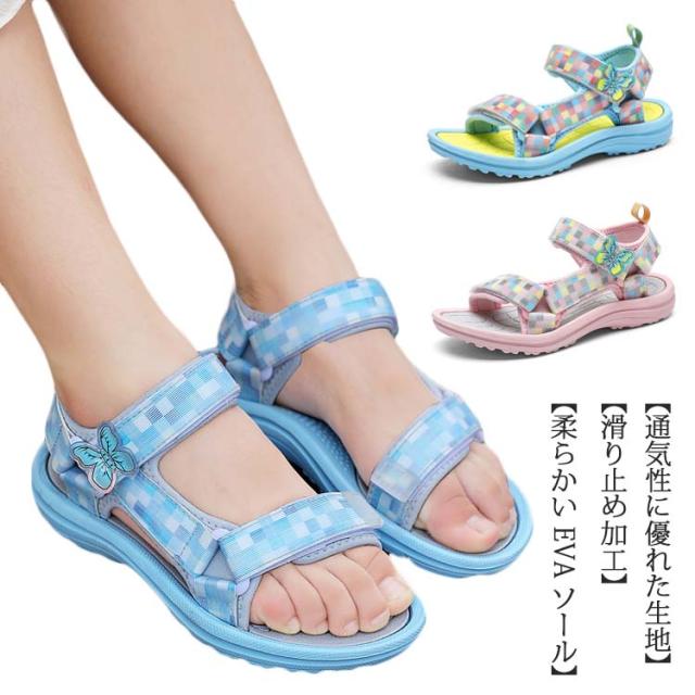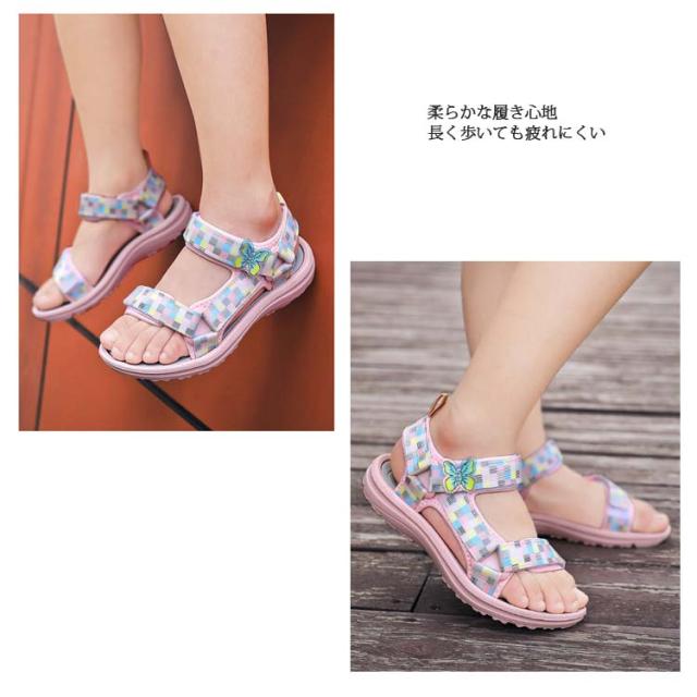 送料無料 スポーツサンダル キッズ 水陸両用 おしゃれ 子供サンダル 女の子 ベルクロサンダル 歩きやすい 履きやすい キッズサンダル ストラップ マジックテープ スポーツ 軽量 ピンク ビーチサンダル