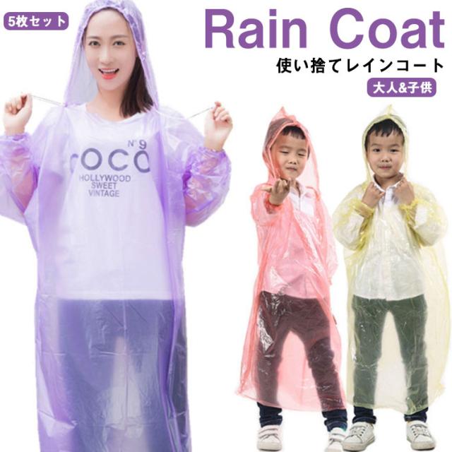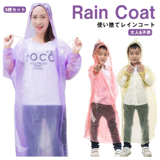 大人用 子供用 レインコート 使い捨て 5枚セット 個装タイプ レインコート レインポンチョ カッパ レインコート 使い捨て 雨具 雨ガッパ 男女兼用 キャンプ 釣り 登山 アウトドア 遊園地 野外コンサート 旅行 レインウェア レイングッズ 雨合羽 緊急時 送料無料