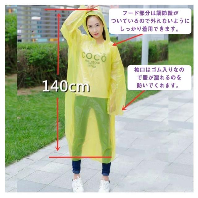 | 【商品名】使い捨てレインコート 【素材】 PE 【サイズ】大人サイズ 子供サイズ 【特徴】突然の雨でも安心!持ち運びに便利な使い捨てレインコート。さっと着れる!さっと脱げる!携帯にも便利! フード部分は調節紐がついているので外れないようにしっかり着用でき、袖口はゴム入りなので服が濡れるのを防いでくれます。 通勤・通学・旅行・コンサート・野外イベントの突然の雨に! バッグの中に入れておけば、予測のつかないの天候変化も気にせず過ごせます。 | |