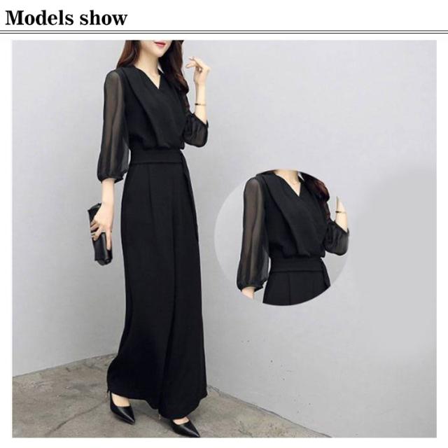 レディース オールインワン フォーマル パンツスタイル ワイドパンツ ドレス ロングパンツ パンツドレス 体型カバー 細見え 結婚式 2次会 パーティードレス 7分袖 大人女子 春秋 キレイめ 送料無料