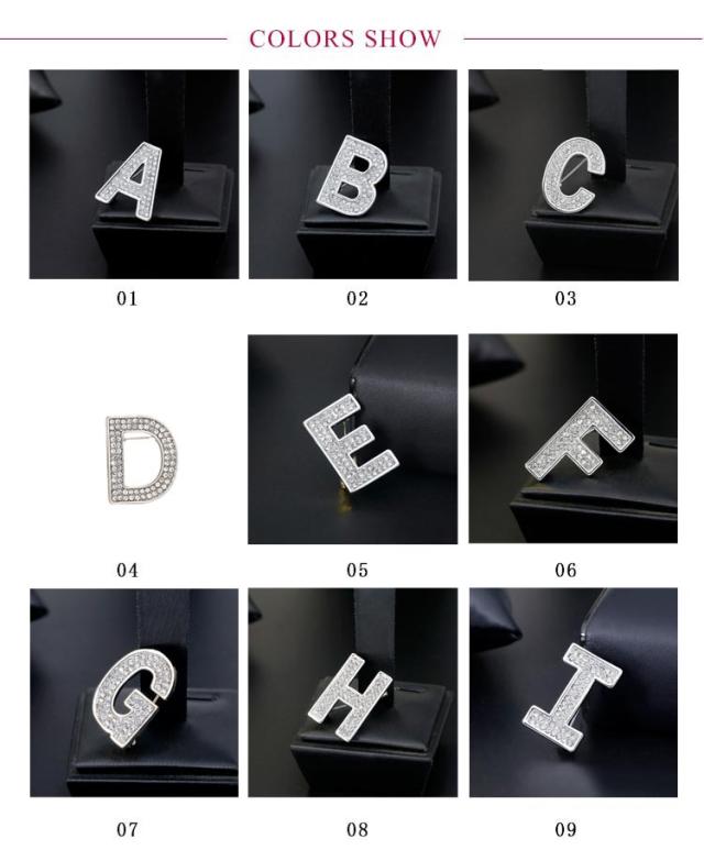 | 飾り字体のアルファベット、ゴージャスブローチです クリスタルがぎっしり光り輝きます! 入学式や卒業式などのフォーマルなコーデに合わせるのもオススメです♪ | |