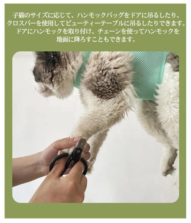 | 伸びない簡単な吊り下げ用の強化グロメット犬/猫の足を穴に入れ、包み込み、フックを使って吊るすだけです。このペットハンモックヘルパー は、ペットサロンに余分なお金を費やすことなく、ペットが自宅でお風呂に入るのを助けることができます。 子猫のサイズに応じて、ハンモックバッグをドアに吊るしたり、クロスバーを使用してビューティーテーブルに吊るしたりできます。ドアにハンモックを取り付け、チェーンを使ってハンモックを地面に降ろすこともできます。 ペットのハンモックヘルパーは、入浴、爪切り、薬の服用、歯や耳の掃除、点眼薬の服用、検査、注射、耳かきに使用できます。 それはあなたのペットをとても快適に感じさせてリラックスさせることができます。 | |