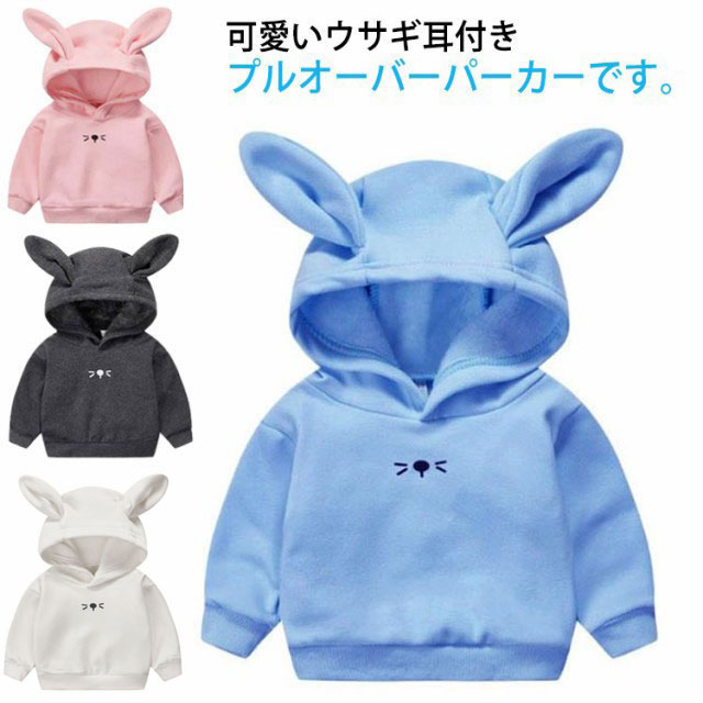 キッズ パーカー プルオーバーパーカー アウター うさぎ ジュニア 長袖 秋冬 子供服 綿 ベビー服 ベビーウェア 男の子 女の子 耳付きフード うさ耳 着ぐるみ風 80 90 100 110 120