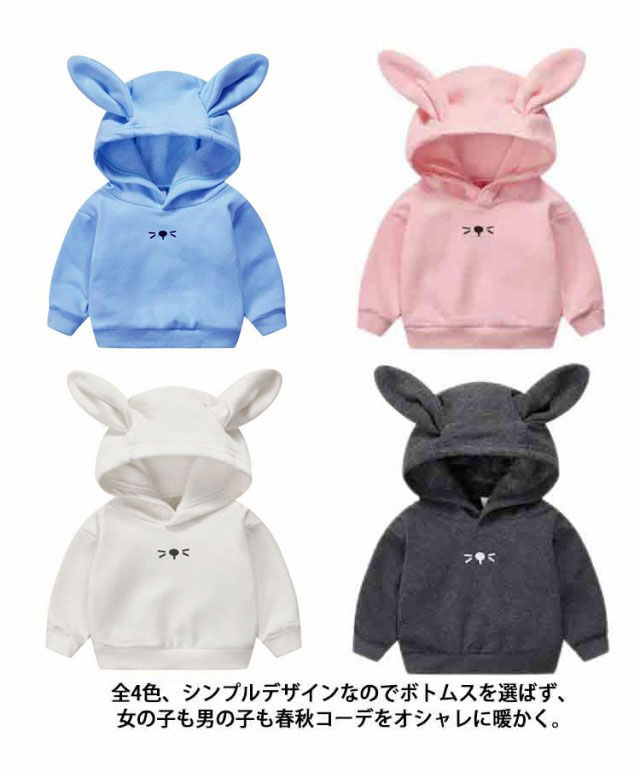 | 可愛いウサギ耳付きプルオーバーパーカーです。 なめらかな肌触りのあったかトレーナー、トレンドのオーバーサイズシルエットがお洒落にストレスフリーな着心地。 全4色、シンプルデザインなのでボトムスを選ばず、女の子も男の子も春秋コーデをオシャレに暖かく。 お出かけはもちろん、部屋着としても大活躍。 | |