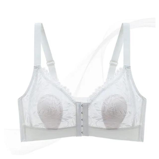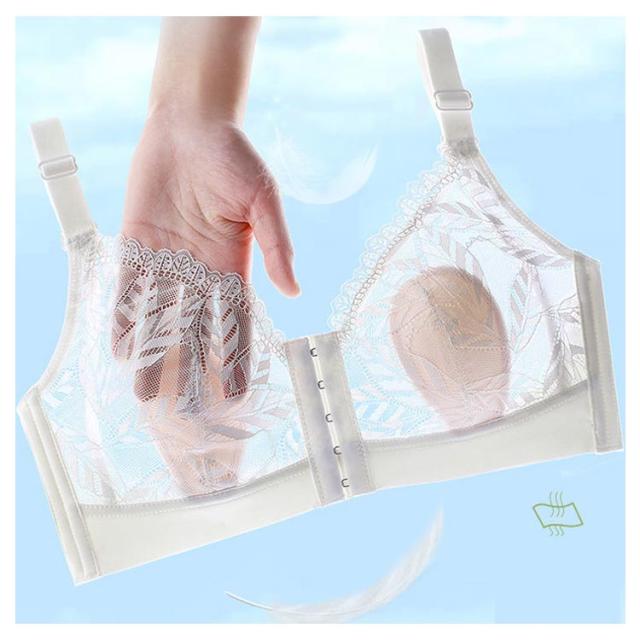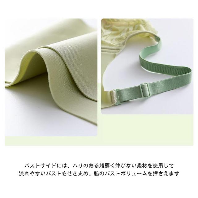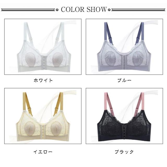 | 大きなバストを小さく見せる着痩せ超薄いブラ、いつでも超快適! 上品で可愛らしいレースがポイント。 バストトップの高さを目立たない様に工夫しました! 頼もしい前開きホック。しっかりとバストを支えます! バストトップの高さを目立たない様に工夫しました! サイドの脇高効果でハミ肉をキャッチ! U字のバックスタイルで肩への負担も軽減し、後ろ姿もすっきり! 大きなバストを小さく見せる着痩せブラ、いつでも超快適! バストサイドには、ハリのある超薄く伸びない素材を使用して、流れやすいバストをせき止め、脇のバストボリュームを押さえます。 ノンワイヤーでもバストをしっかり支えます。ワイヤーが苦手な方に。いつでも超快適! | |