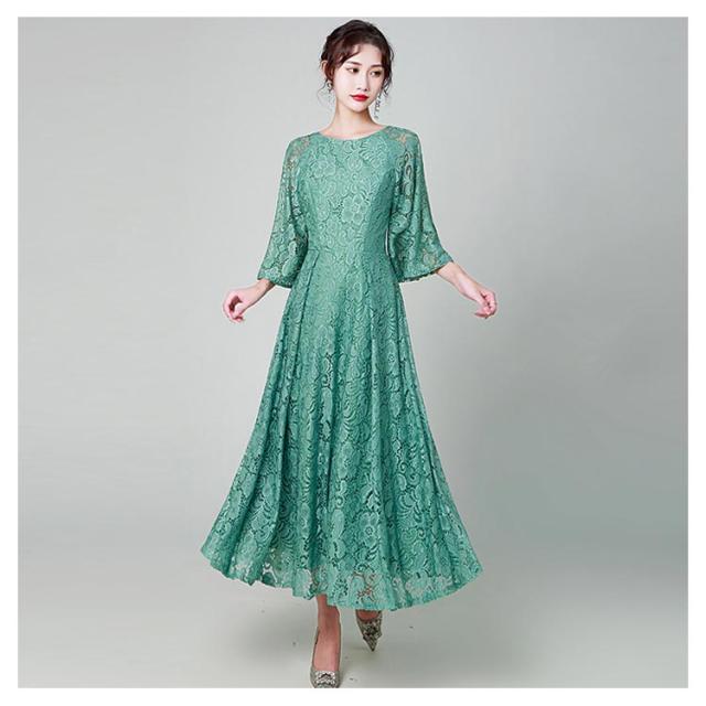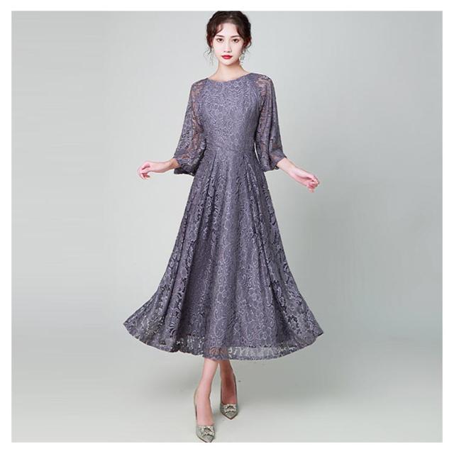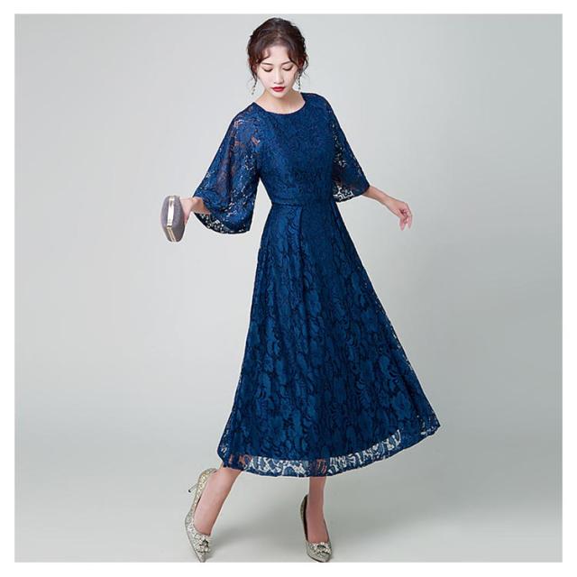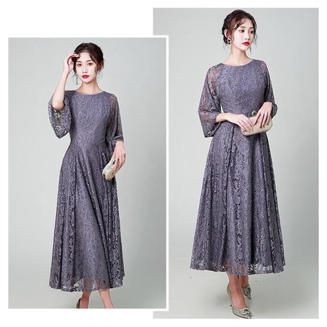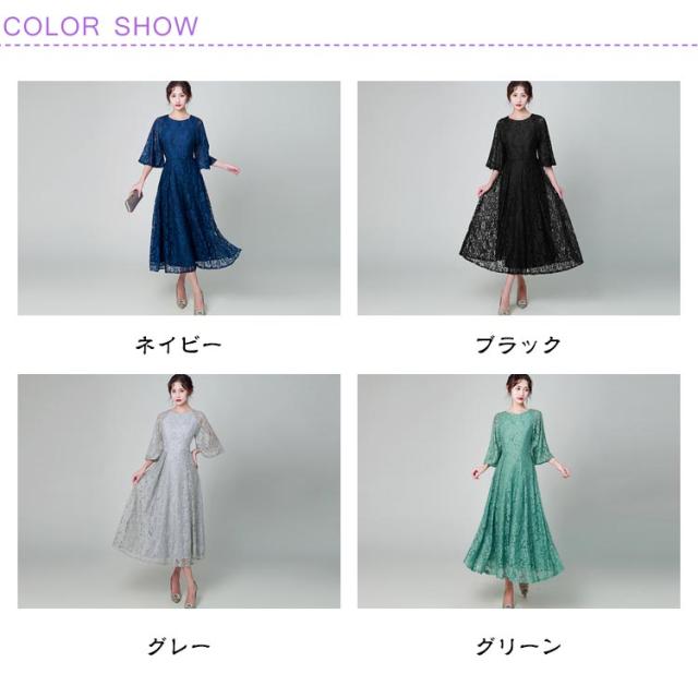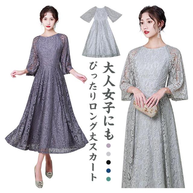 結婚式 ワンピース パーティードレス 花柄 レース ロングドレス 総レース シアー 透け感 フレア袖 オケージョン 春 夏 秋 冬 パーティドレス 二次会 謝恩会 成人式 同窓会 体型カバー 服装 入学式 卒業式