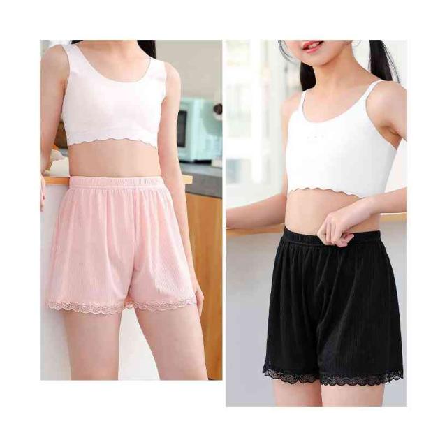 レースショーツ キッズ 春夏秋 インナーパンツ レース付き ショートパンツ ウエストゴム ハイウエスト ゆったり 切り替え 見せパンツ 子供用 無地 レース女の子 ペチパンツ 安全パンツ 安全ショーツ 可愛い おしゃれ 送料無料 下着 肌着 子供服