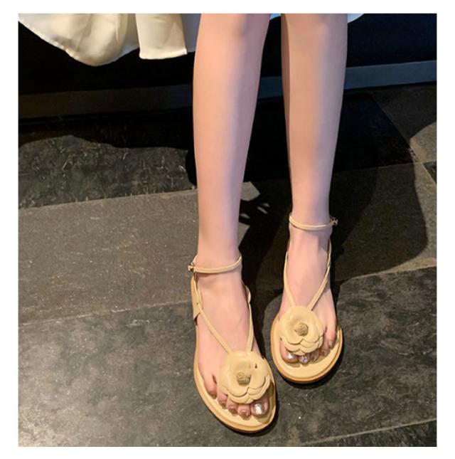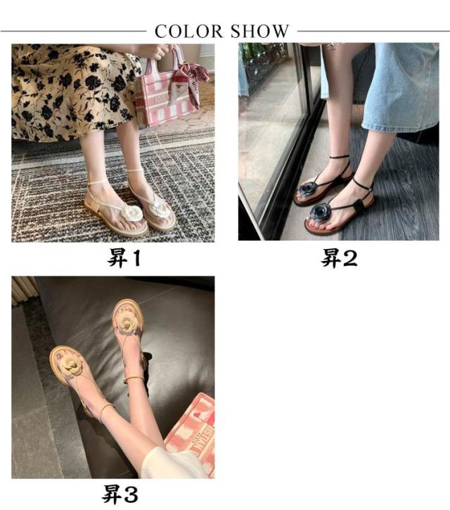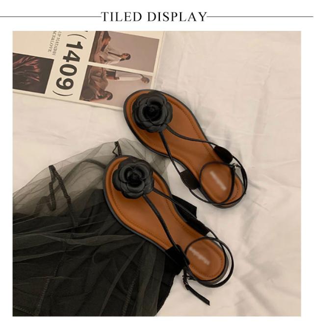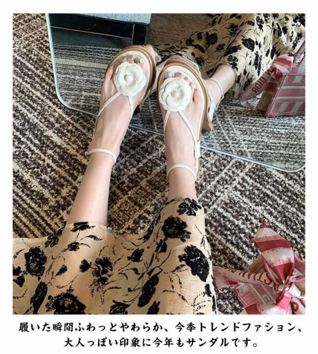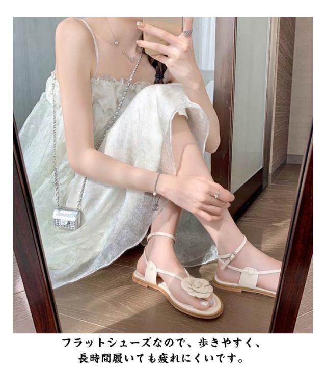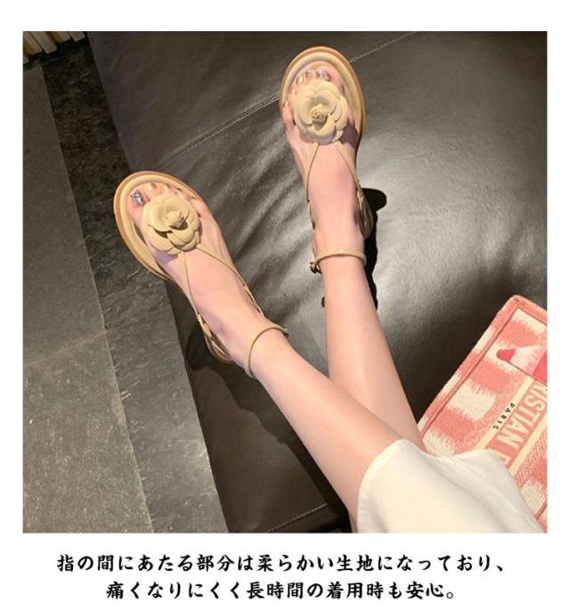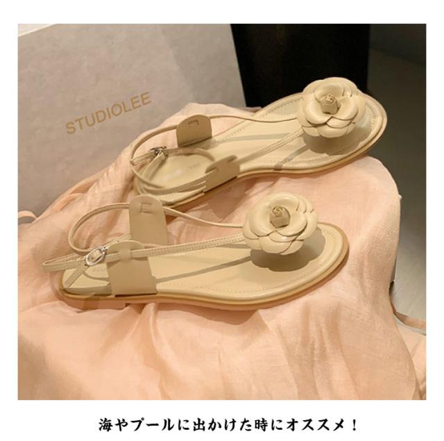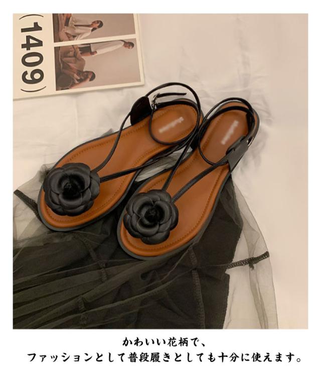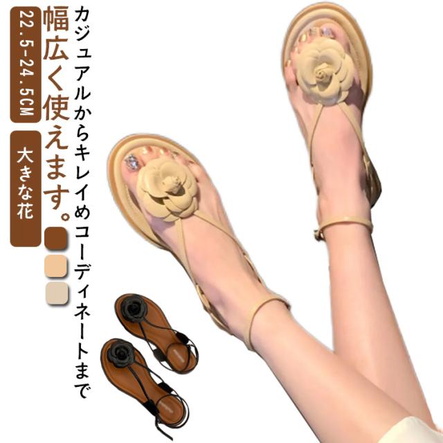 ストラップサンダル トングサンダル レディース 痛くない フラットシューズ アンクルストラップ フラットサンダル 歩きやすい フラット 大きな花 かわいい 22.5-24.5cm