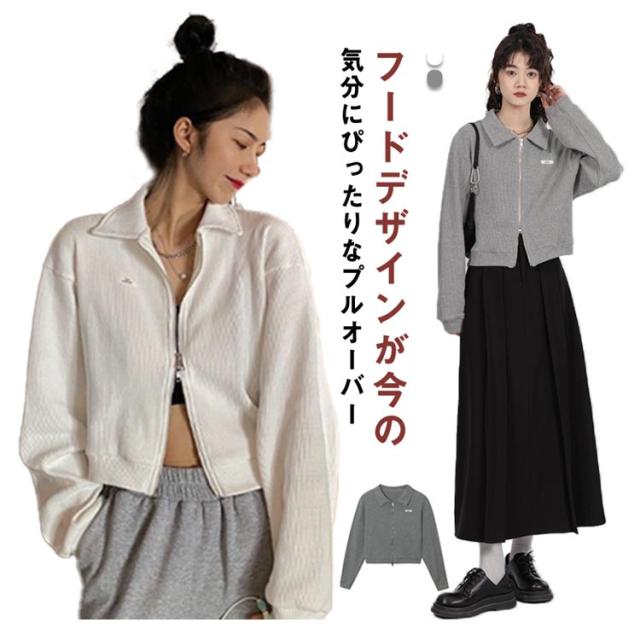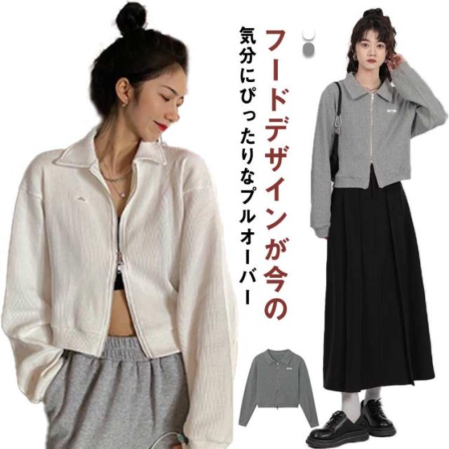 パーカー レディース トップス フード ジップ スウェット ゆったり リラックス カジュアル オーバーサイズ 可愛い 長袖 春 夏 秋 おしゃれ かわいい 無地 ボリューム袖 プルオーバー 羽織 送料無料