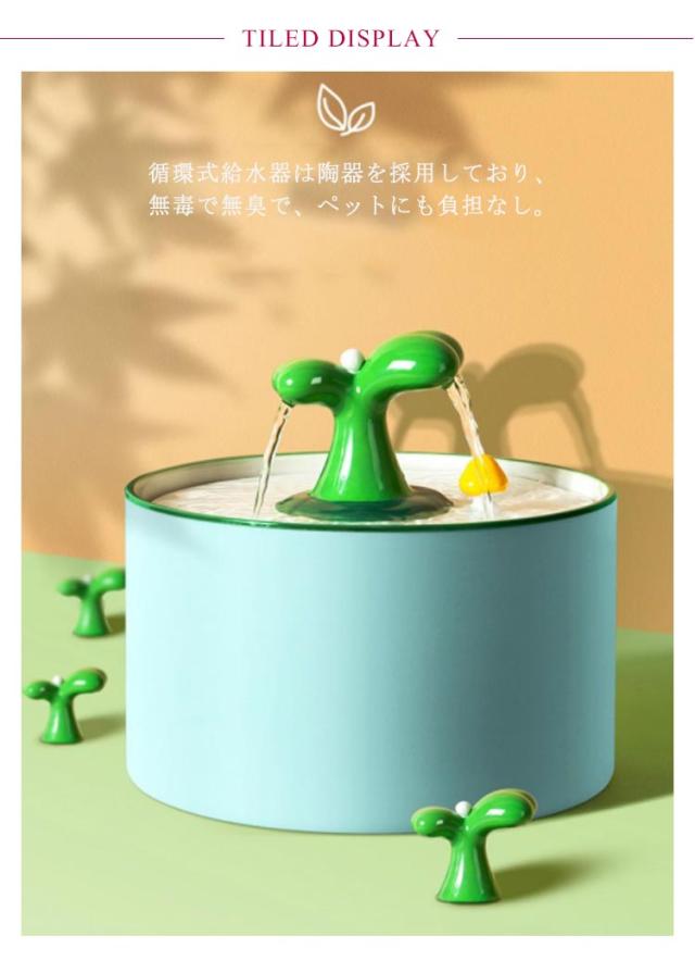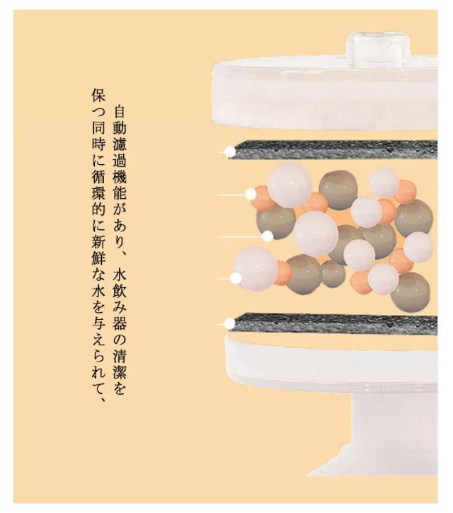 | ペット用自動給水機です!ワンちゃん猫ちゃんにいつもきれいなお水を! 循環式給水器は陶器を採用しており、無毒で無臭で、ペットにも負担なし。 自動濾過機能があり、水飲み器の清潔を保つ同時に循環的に新鮮な水を与えられて、 ペットにいつでも循環している美味しい水を飲めます。 超静音と振動低減設計の最新世代水中ポンプですので、水の音がほとんど聞こえません。 ペットは夜のお休みに影響を与えません。 1L大容量のペット用自動給水機、小型ペットの2-4日間の飲み量を提供できます。 | |