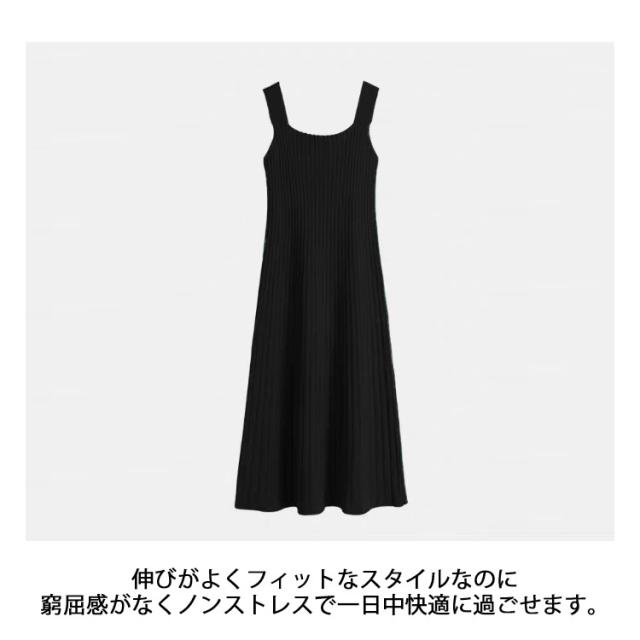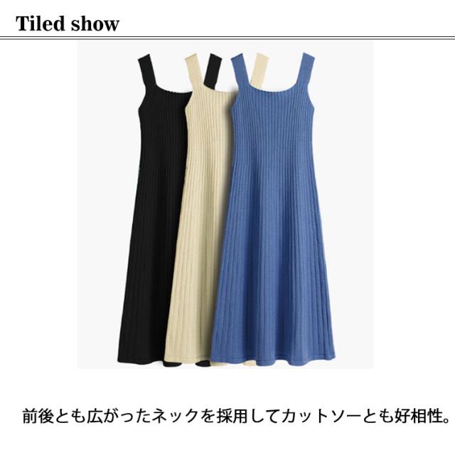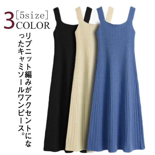 ニットワンピース キャミソールワンピース ニットキャミソールワンピース ワンピース 膝下丈 Aライン シンプル 無地 リブ 秋 冬 春 おしゃれ 可愛い ブラック ベージュ ブルー 送料無料
