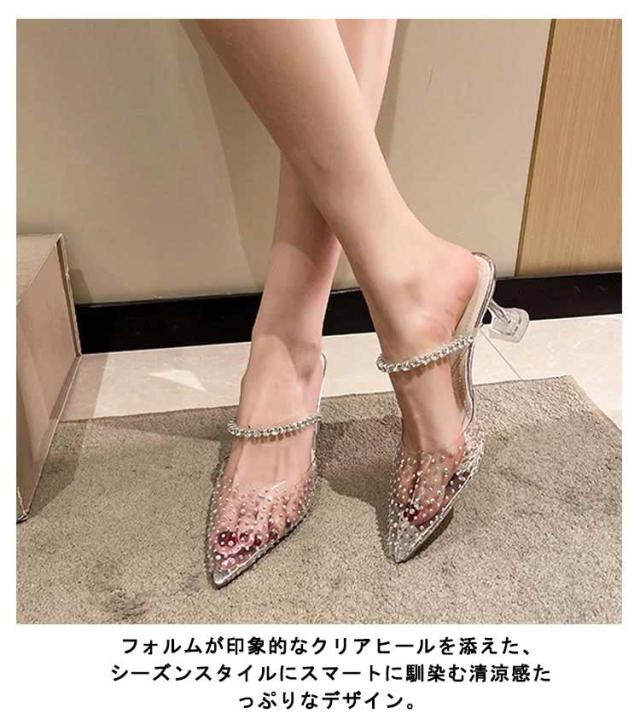 クリア ミュール サンダル クリアヒール 6cm ヒール クリアサンダル キラキラ ポインテッドトゥ ピンヒール ダブルベルト ミュールサンダル クリアミュール クリア 透明 大人可愛い レディース 靴 歩きやすい 美脚 おしゃれ シルバー 白