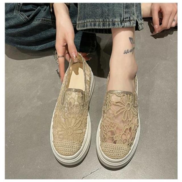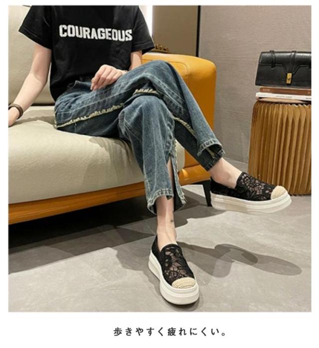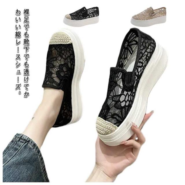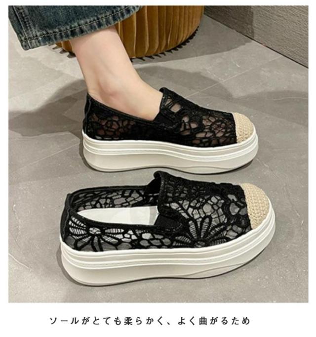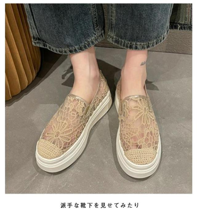 インヒールスリッポン レディース スリッポン スニーカー 透け感 レース フラットシューズ おしゃれ 透け シースルー 花柄 ローカット 大人カジュアル 痛くない 履きやすい 美脚 おしゃれ 可愛い 春 夏 軽い 軽量 ブラック ベージュ 送料無料