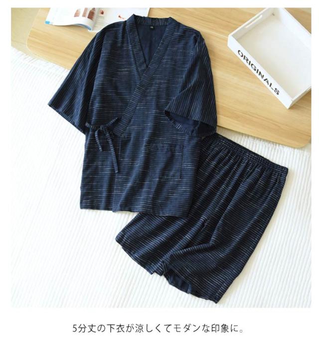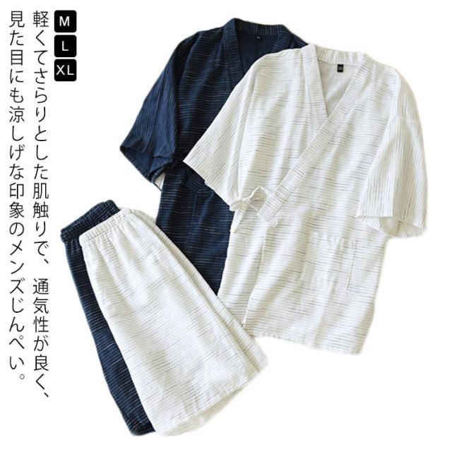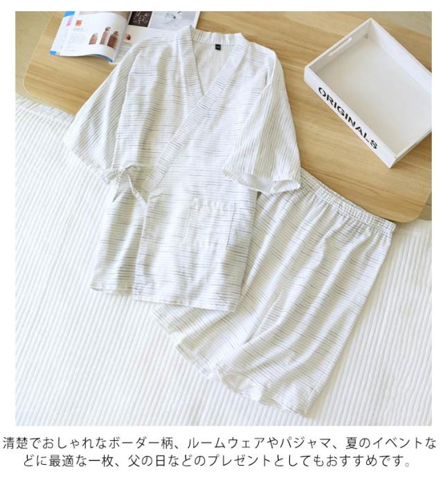 父の日 甚平 メンズ じんべい 綿 パジャマ 上下セット ナイトウェア ボーダー柄 浴衣 2点セット 部屋着 ハーフパンツ ショートパンツ 涼しい 5分袖 パジャマ 前開き 和式 半袖 男女兼用 春夏 大きいサイズ 送