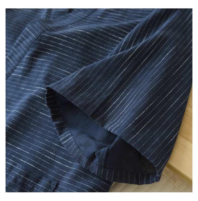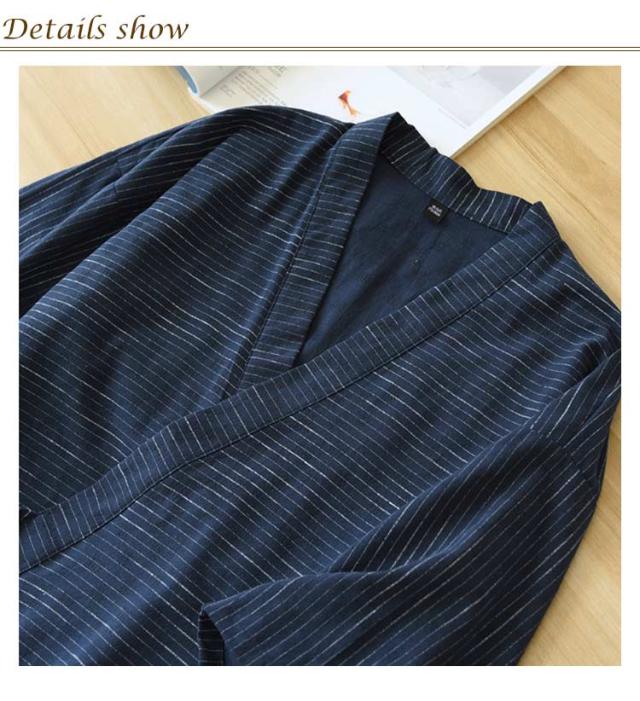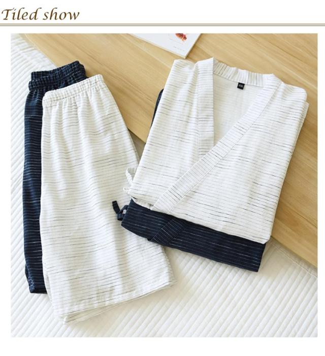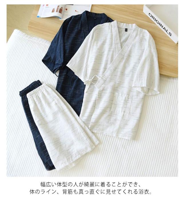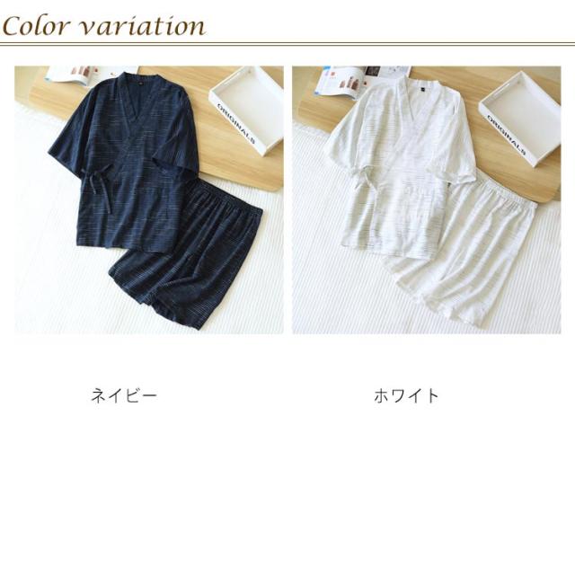 | 軽くてさらりとした肌触りで、通気性が良く、見た目にも涼しげな印象のメンズじんぺい。 幅広い体型の人が綺麗に着ることができ、体のライン、背筋も真っ直ぐに見せてくれる浴衣。 清楚でおしゃれなボーダー柄、ルームウェアやパジャマ、夏のイベントなどに最適な一枚、父の日などのプレゼントとしてもおすすめです。 5分丈の下衣が涼しくてモダンな印象に。 | |