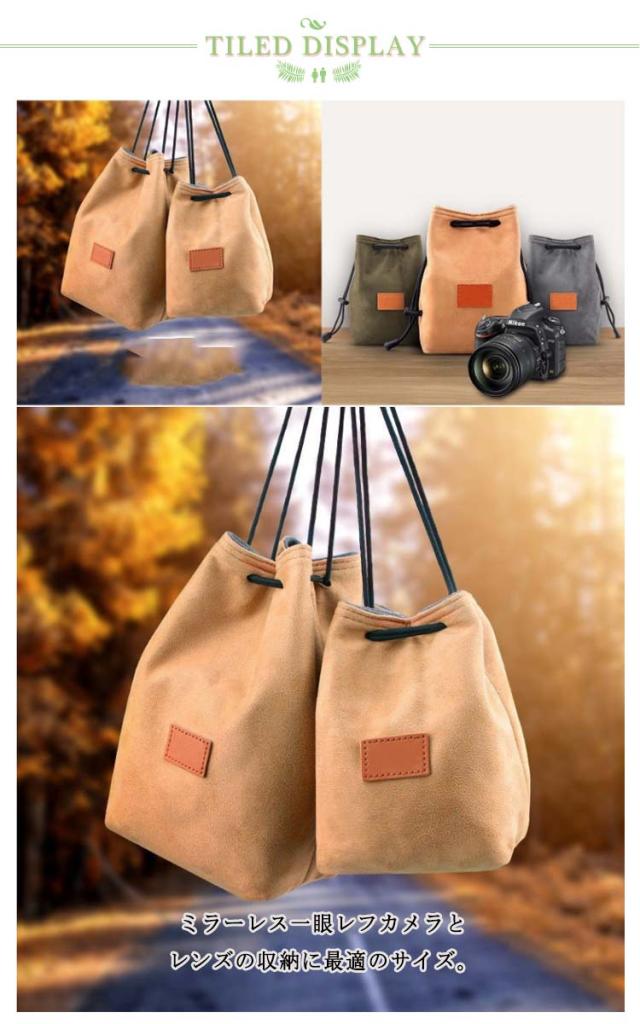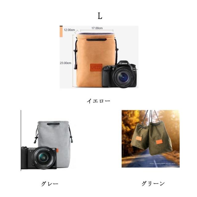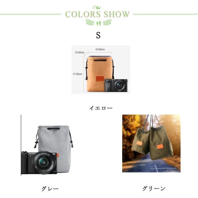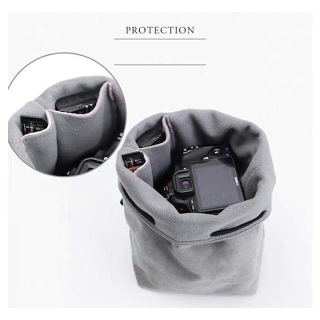 | お手持ちのバッグにこのインナーケースを入れれば安心してカメラを持ち運べます! ミラーレス一眼レフカメラとレンズの収納に最適のサイズ。 巾着型なので、サッと広げてOK。紐を引っ張れば閉める!そのまま収納でき、すぐに使えて便利です。 柔らかい生地を採用されて、大切なカメラやレンジが擦り傷をつけることを心配する ことがありません、汚れ、ホコリなどから守ります。 SDカード、レンズキャップ、スマホなど、バッグ収納時に便利なポケットとしてご活用頂けます。 | |