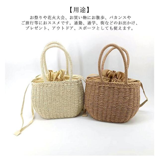 かごバッグ レディース 手提げバッグ ハンドバッグ かご編みバッグ 軽量 巾着付き バスケット型 ナチュラル 大容量 手提げ ペーパーストローバッグ 可愛い お花見 水着 浴衣 バレンタイン カゴバック 籠バッグ リゾート 旅行 送料無料 プレゼント