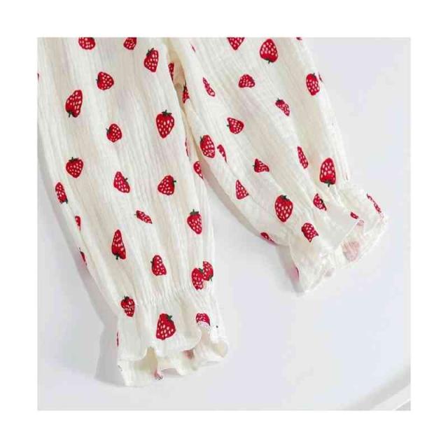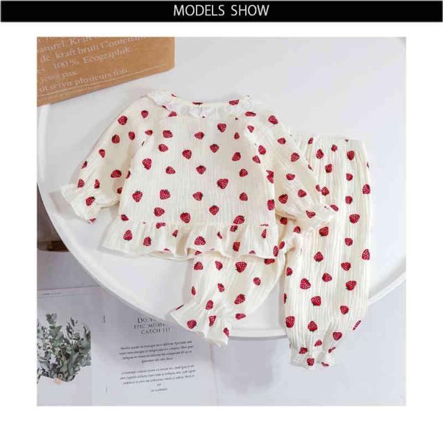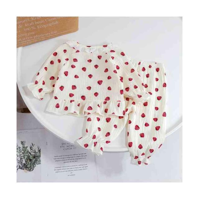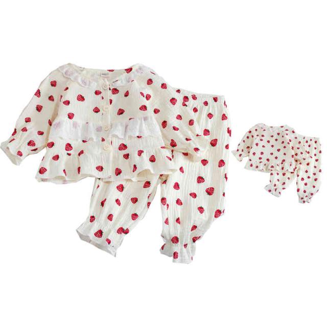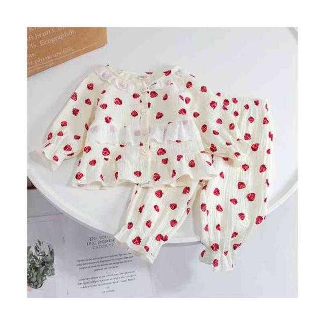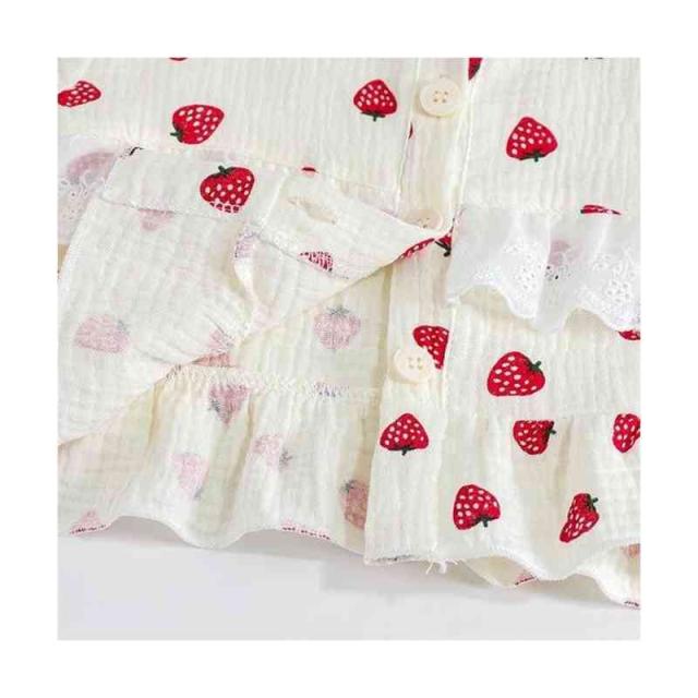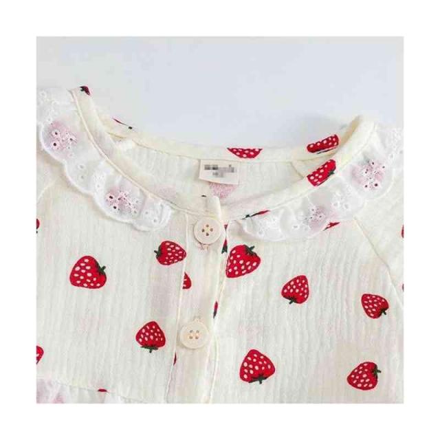 苺パジャマ キッズ 春秋 女の子 レースパじゃマ おしゃれパジャマ ルームパジャマ 二点セット ルームウエア 長袖 セットアップ 部屋着 送料無料 いちご柄 可愛い 上下セット 寝巻き
