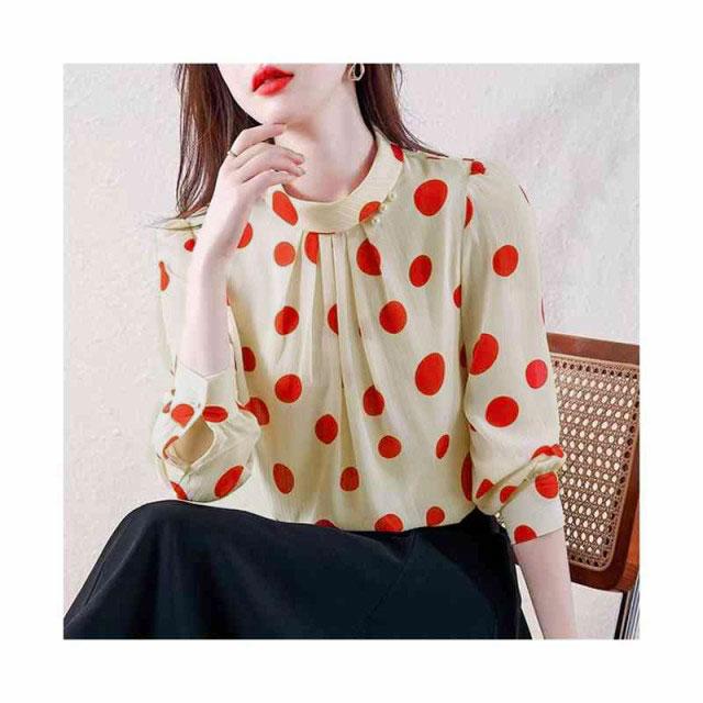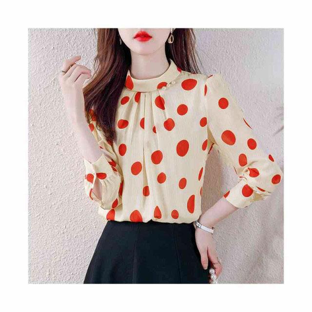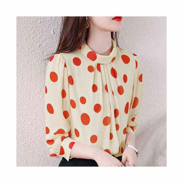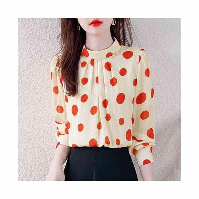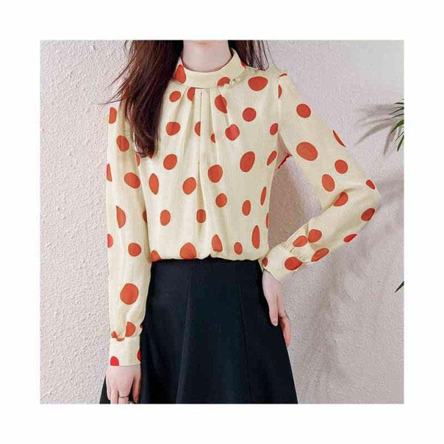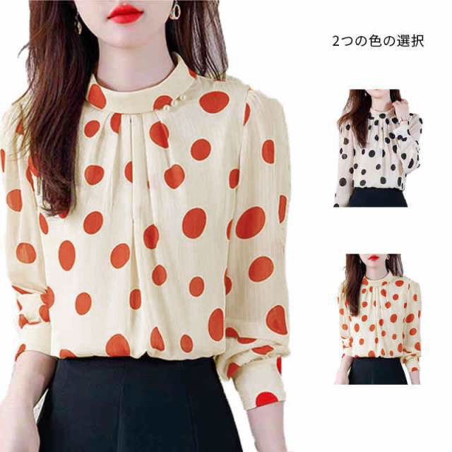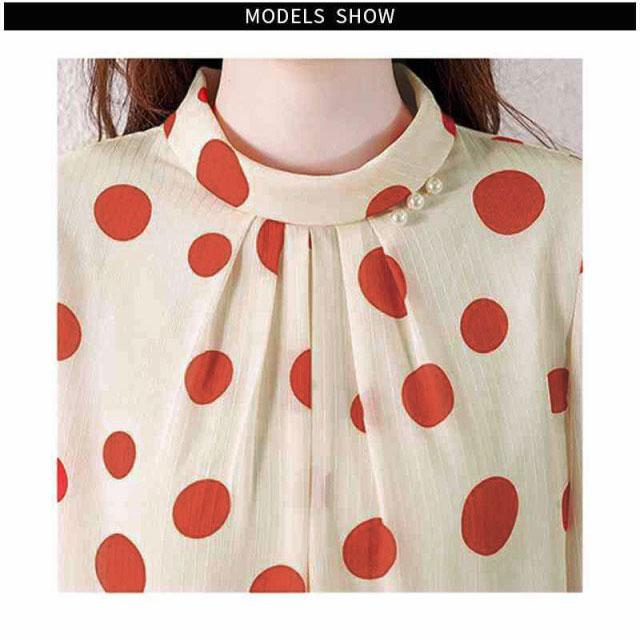 ブラウス レディース シフォンブラウス プリーツブラウス 立ち襟 トップス ドット柄ブラウス インナーブラウス ドット柄 フォーマルブラウス おしゃれブラウス インナーウエア シンプル カジュアル おしゃれ 送料無料 おでかけ