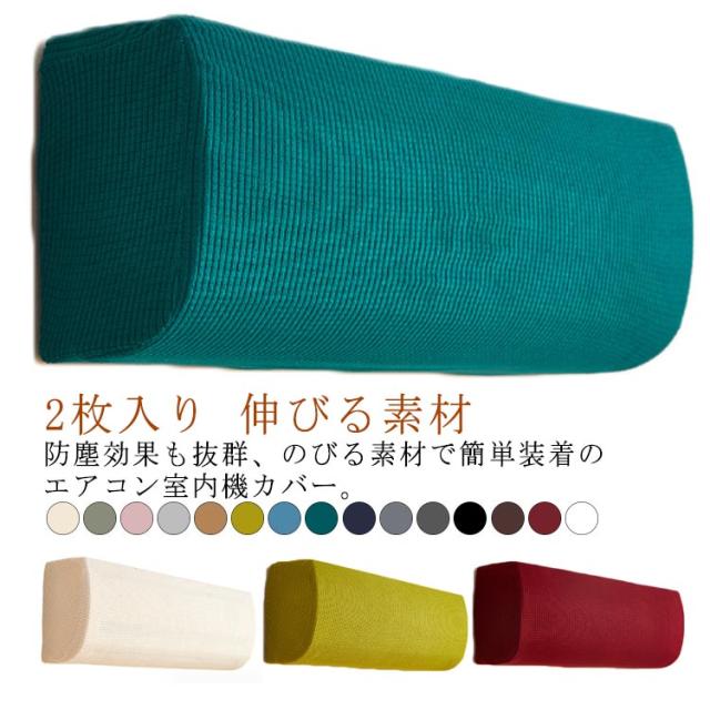 送料無料 2枚入り エアコンカバー 室内 エアコン室内機カバー 簡単装着 無地 伸びる素材 防塵 防汚対策 幅88-95cm 幅90-110cm のびのび ストレッチ 大きいサイズ 汎用サイズ 洗える
