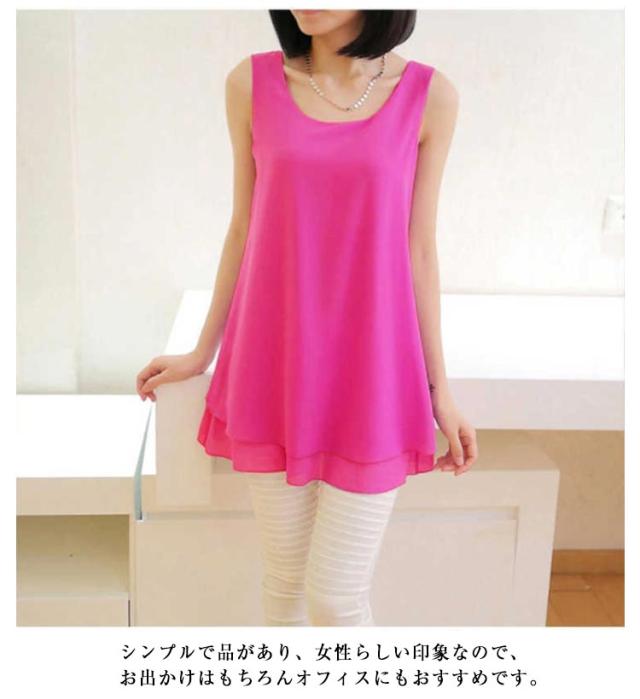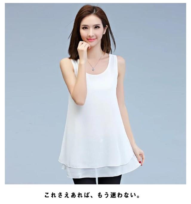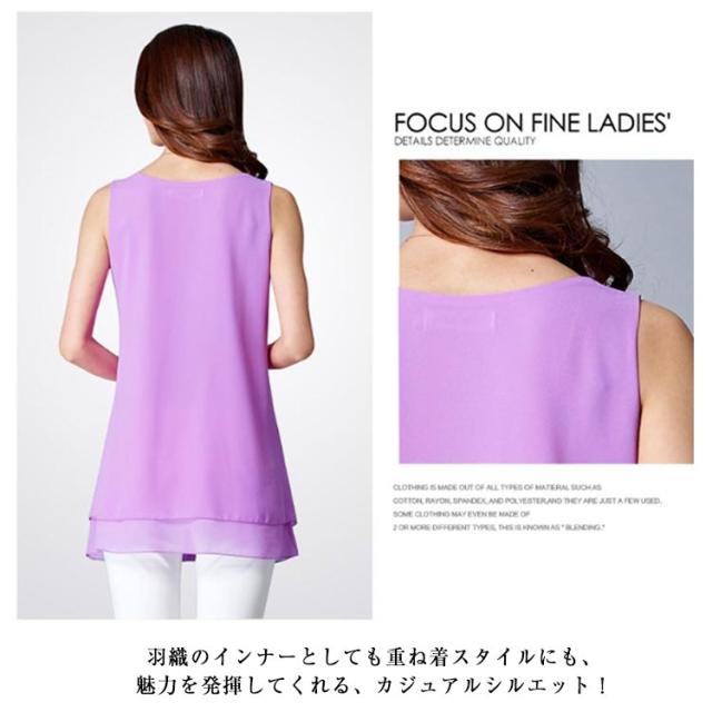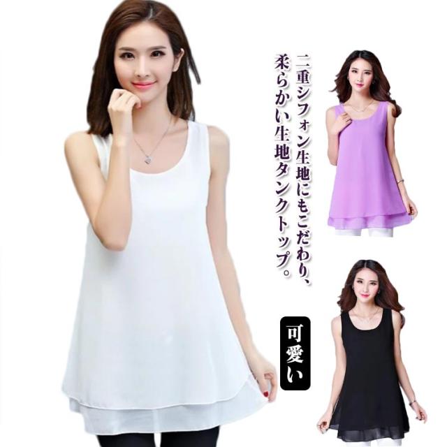 タンクトップ レディース お尻が隠れる 二重 シフォン チュニック ノースリーブ トップス シフォンベスト ノースリーブシャツ フェミニン エレガント 可愛い Aライン フレア シンプル M L XL 2XL 3XL 4XL 5XL