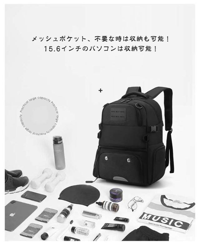 | ボール 靴入れ!よくバスケットボールをする方に便利なリュック。 フロントにバスケットボールが収納できる仕様で、ナスカンでボールを取り出せます。 メッシュポケット、不要な時は収納も可能!15.6インチのパソコンは収納可能! 表地に、撥水加工オックスフォード素材を使用。 なめらかで触り心地の良い質感。耐摩耗性も兼ね備えております。 | |