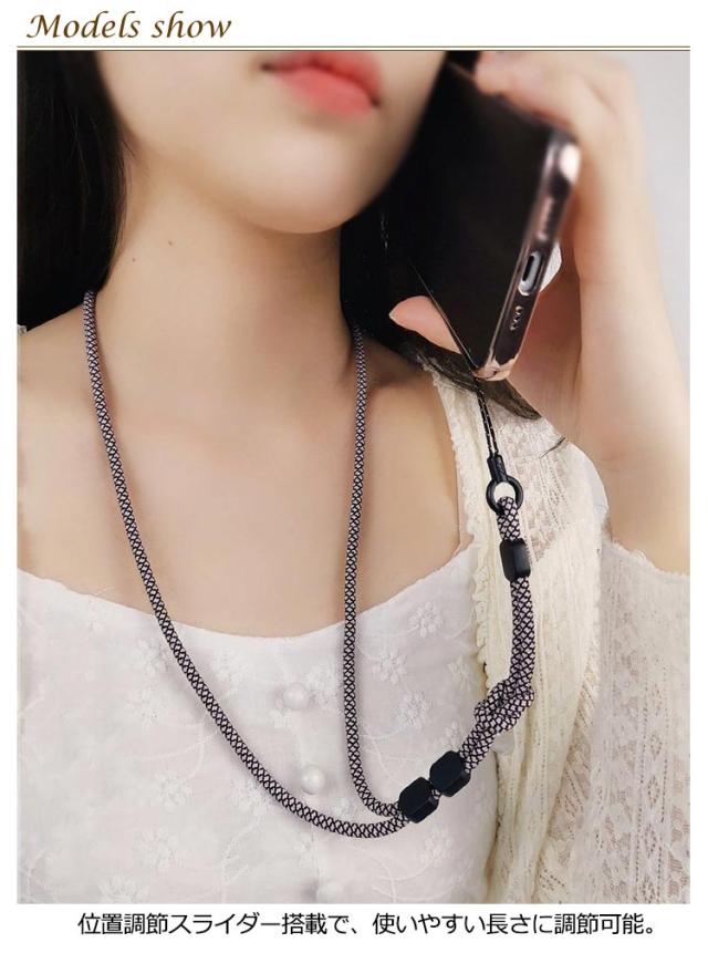 | 首から提げてスマホの落下を防ぐ、スッキリ目立たない細紐タイプのネックストラップ。 ストラップの紐がポリエステル素材なので、首に通した際にちくちくしません。 スライドを調整することでお好みの長さに調節することが可能です。 スマートフォンや携帯電話、カギやコンパクトカメラなど様々なシチュエーションで活躍。 | |