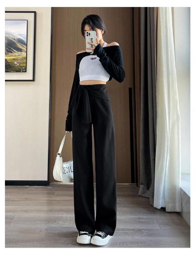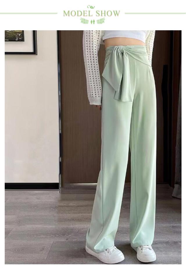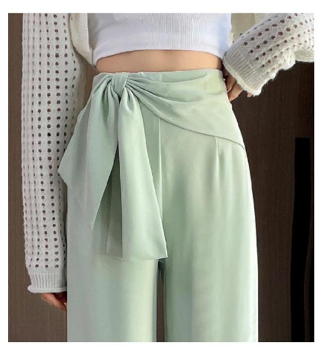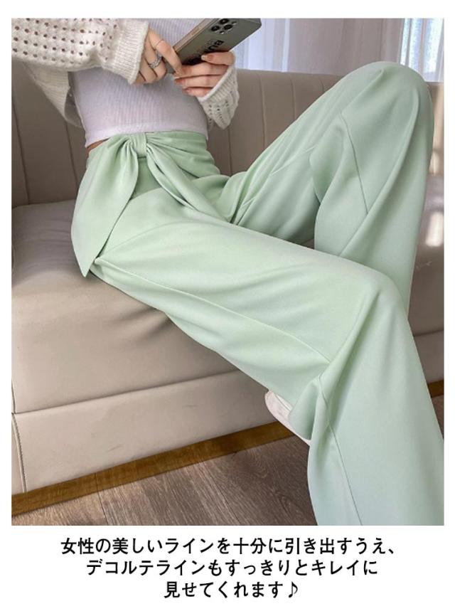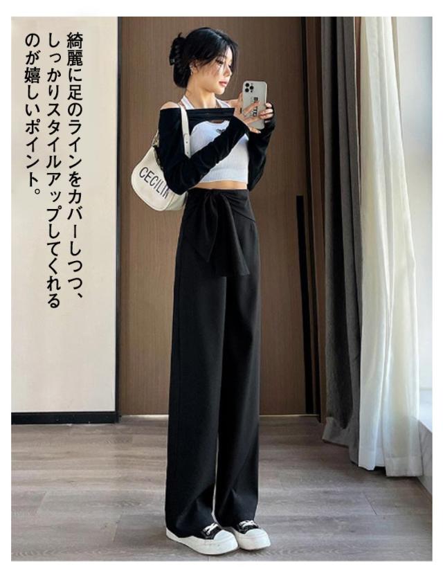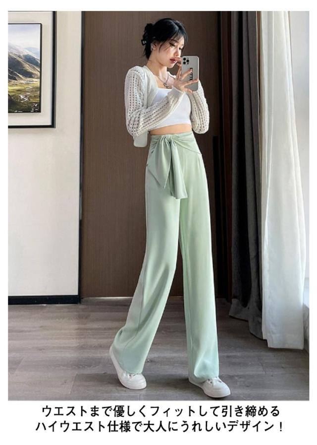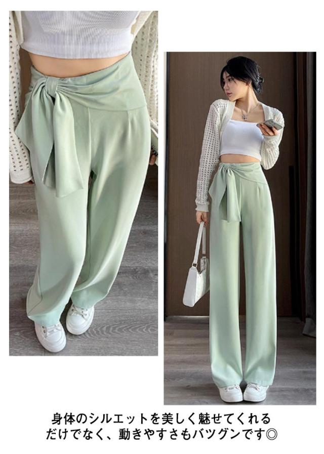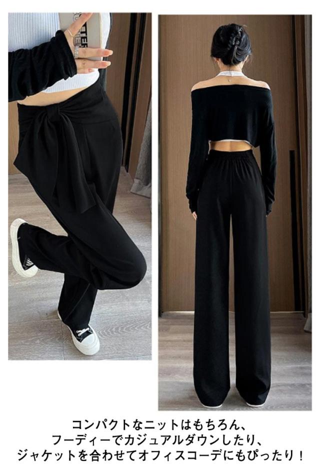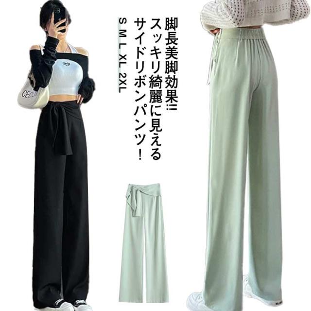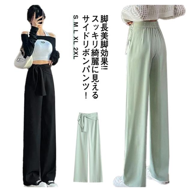 ワイドパンツ レディース ハイウエスト リボン ガウチョパンツ ロングパンツ ボトムス レディースファション パンツ ロング丈 蝶結び 普段着 カジュアル 着痩せ 無地 ワイドパンツ 春 夏 秋 送料無料 小柄 レギュラー丈