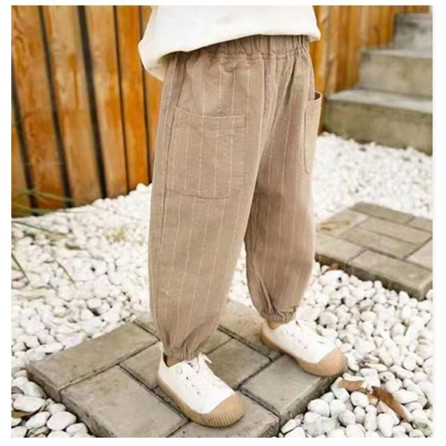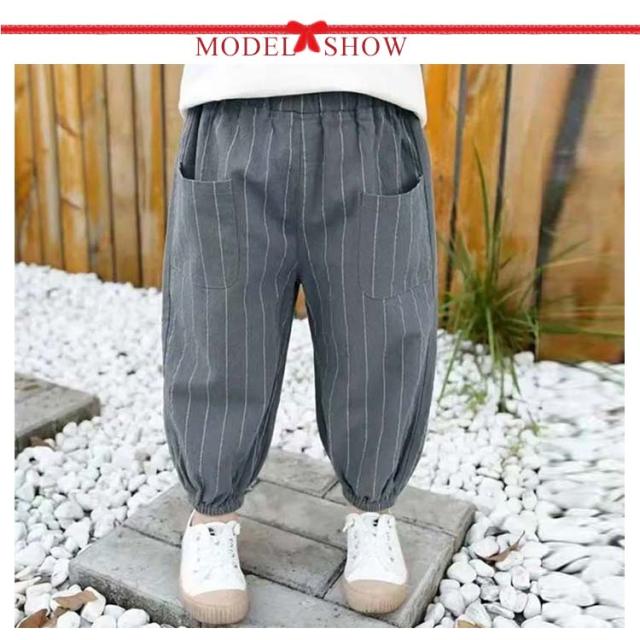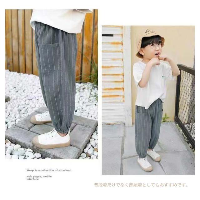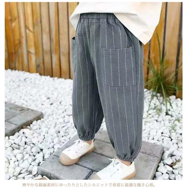 キッズパンツ ストライプ ロングパンツ 綿麻パンツ キッズ 長ズボン サルエルパンツ 男の子 リネンパンツ ボトムス 子供服 綿麻混 ゆったり ウエストゴム ポケット 可愛い 春 夏 ベビー 90 100 110 120 130 140