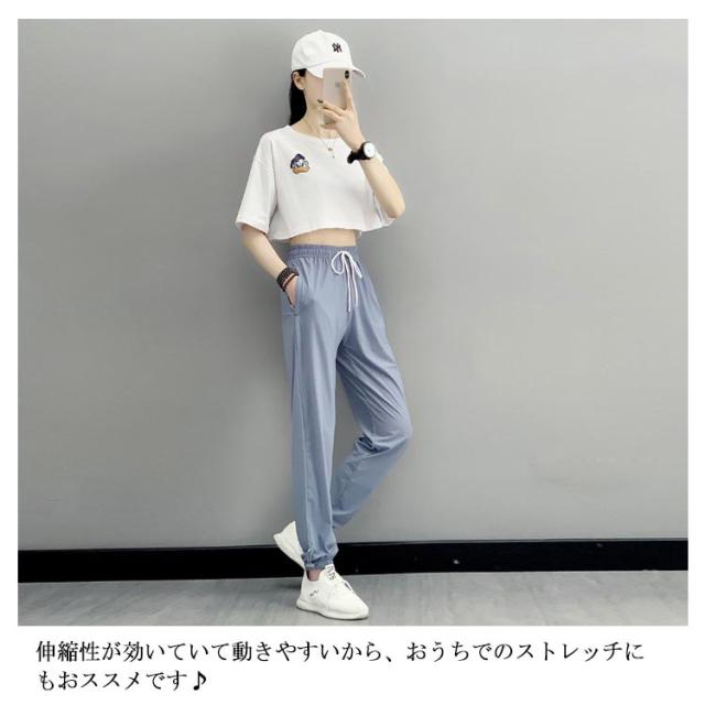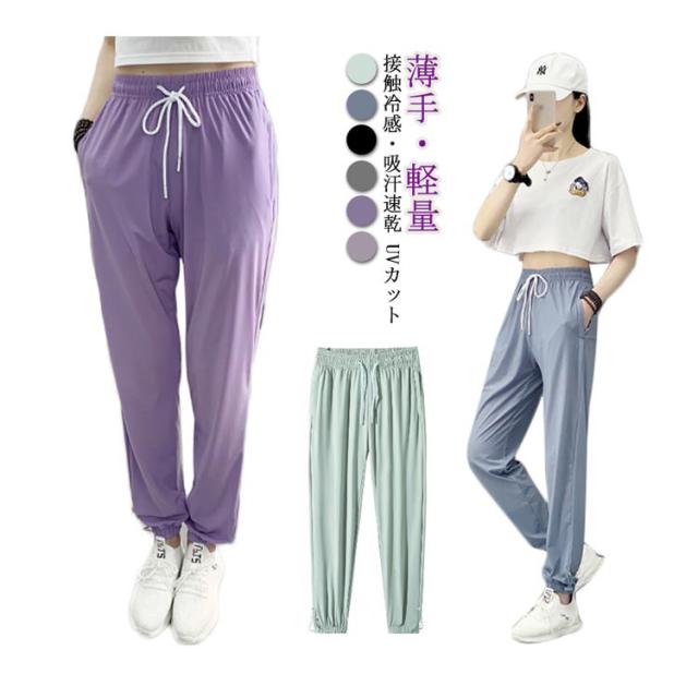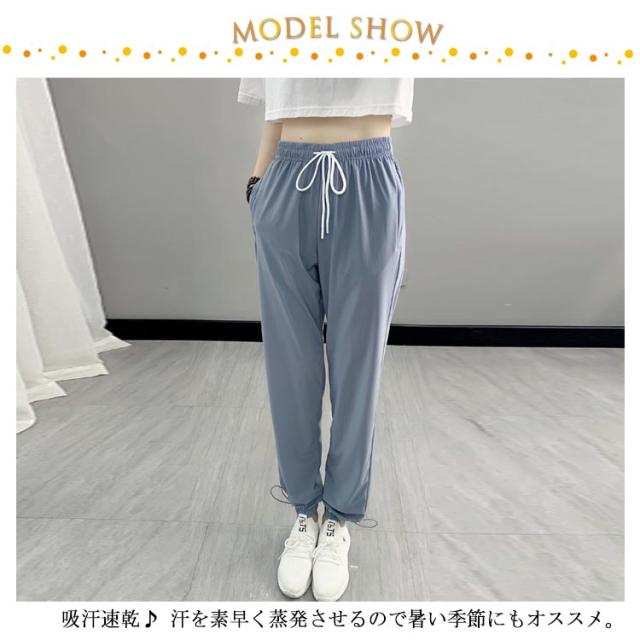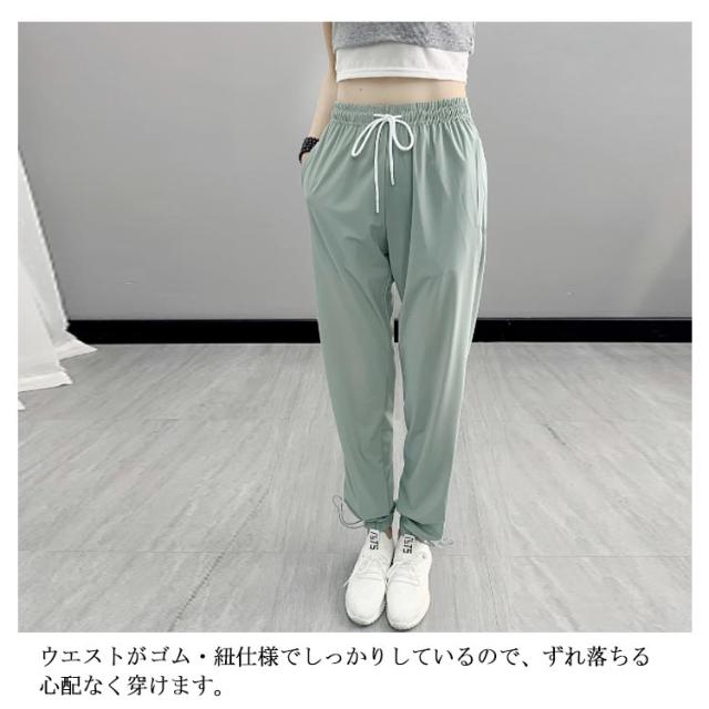 ジョガーパンツ レディース 接触冷感 アイスシルクパンツ ひんやり 通気性 涼しい 冷感パンツ UVカット 薄手 サルエル ストレッチ イージーパンツ 吸汗速乾 楽ちん スポーツパンツ ルームウェア 部屋着 ロングパンツ ウエストゴム 調整紐 夏 春 秋 送料無料