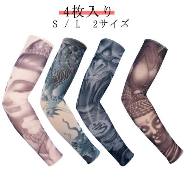 タトゥー アームカバー メンズ レディース タトゥースリーブ 4枚入り タトゥー風アームカバー おしゃれ uvカット 日焼け防止 アーム カバー 紫外線カット 腕 アームカバー tattoo 刺青 入れ墨 和柄 虎 龍 薔薇 スカル トライバル 大きいサイズあり 紫外線防止 夏用 春用