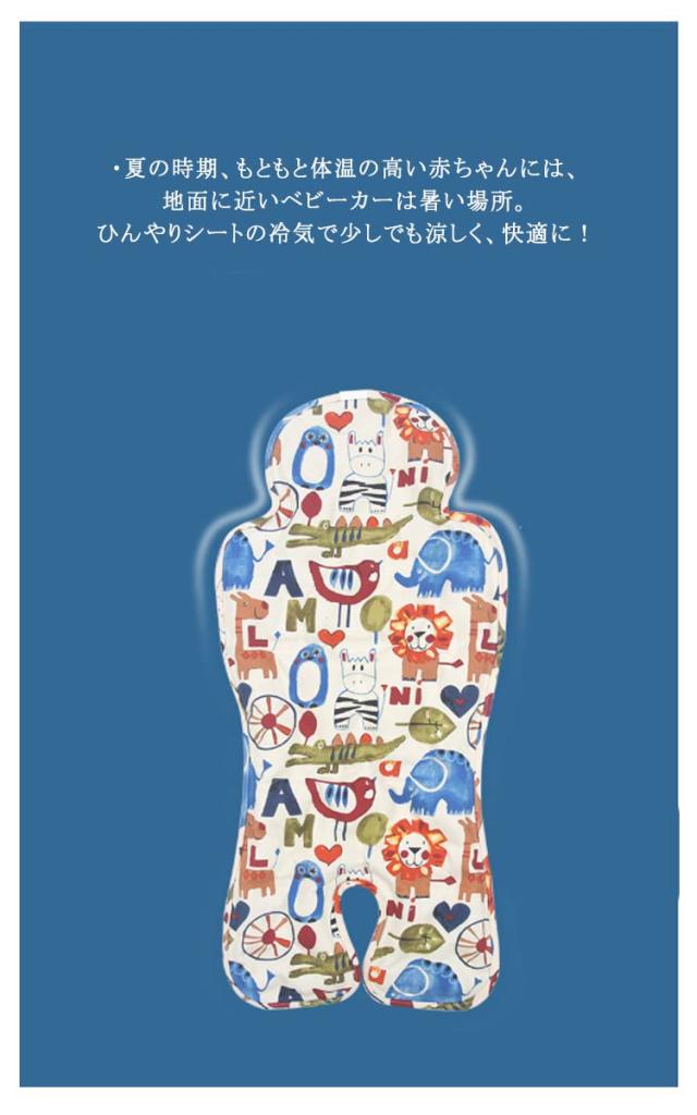 | ・これで赤ちゃんも快適!ベビーカー用ひんやりシート ・冷たさの秘密は「冷感ジェルビーズ」!さわってひんやり接触冷感のビーズがたっぷり詰まっています。 ・冷蔵庫で冷やすとさらに涼しさup!(※程よく冷やしたい場合は約5〜10分) ・表面は通気性・吸水性抜群で肌にやさしい綿生地を使用。 ・サラッとした肌触りだから汗をかきやすい赤ちゃんも安心して使える。 ・夏の時期、もともと体温の高い赤ちゃんには、地面に近いベビーカーは暑い場所。ひんやりシートの冷気で少しでも涼しく、快適に! ・ベビーカーにはもちろん、ベビーチェアやチャイルドシート等にも使えるので、様々なシーンで活躍! ・手洗いOK!いつでも清潔に使えるのが嬉しいポイント◎ | |