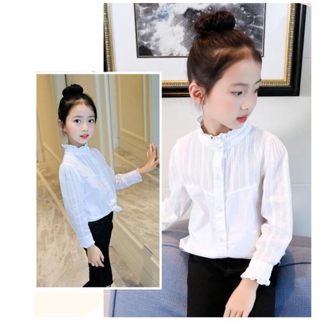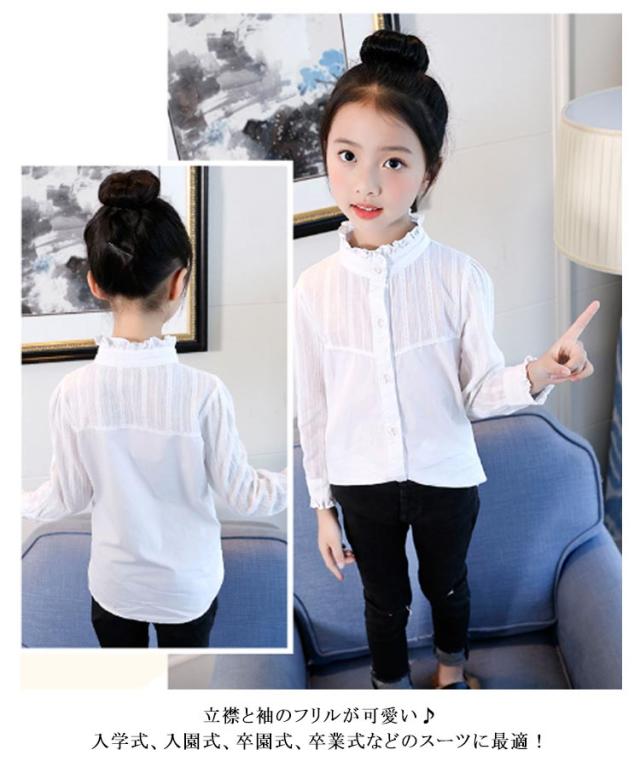 シャツ 女の子 スーツインナー フォーマルブラウス 長袖 トップス 白 送料無料 入園式 入学式 卒園式 卒業式 子供服 女児 ブラウス フリル 立ち襟 可愛い フォーマル 発表会 演奏会 七五三 コンクール フォーマル 子供用 韓国ファッション