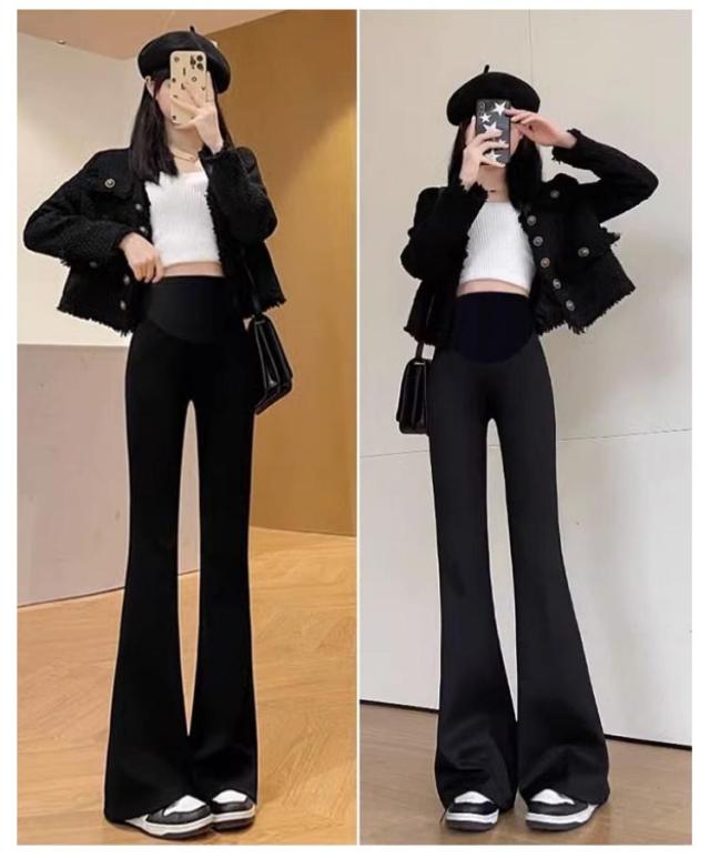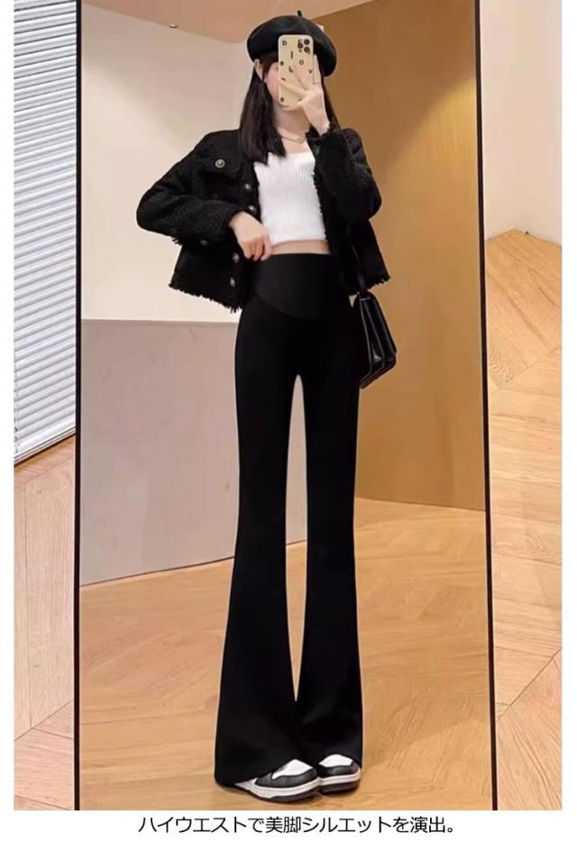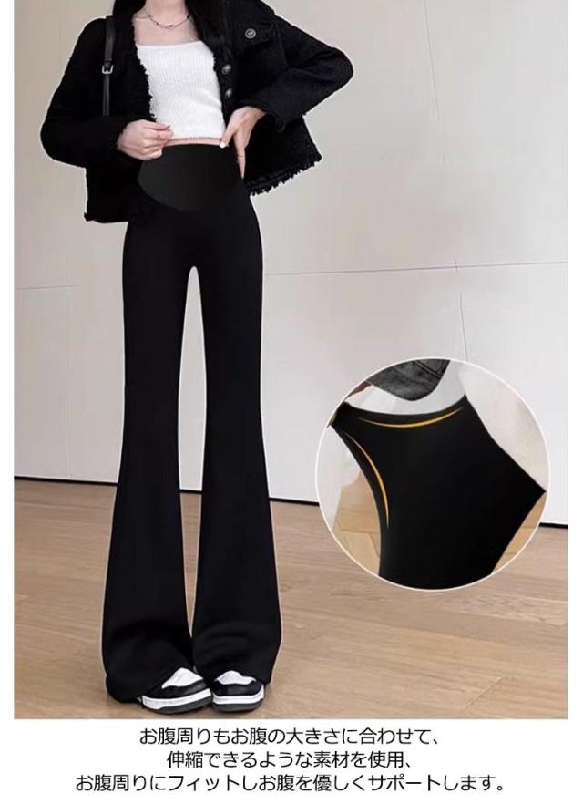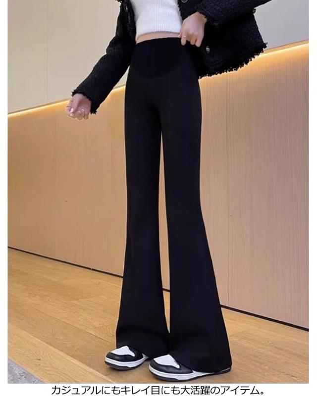 送料無料 マタニティ パンツ フレアパンツ レディース ベルボトム ハイウェスト パンツ マタニティパンツ ストレッチパンツ 美脚 スキニーパンツ おしゃれ 脚長 きれいめ カジュアル ブラック グレー