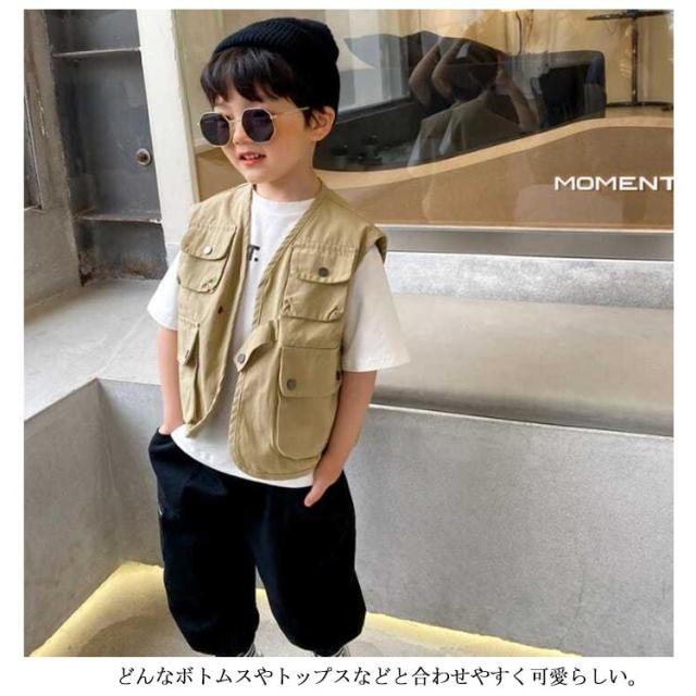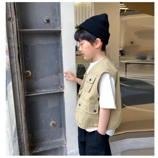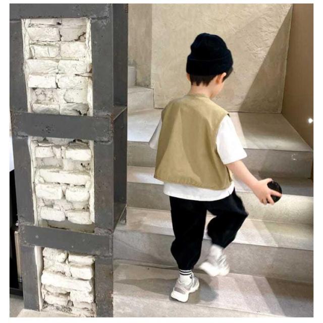 子供服 キッズ ベスト 前開き ベビーベスト ベスト ジレ 赤ちゃん 柔らかい 羽織 韓国風 重ね着 ボタン 男の子 男女兼用 アウター インナーベスト インナー オシャレ ダンス衣装 ヒップホップ 男児 春 夏 冷房対策 保育園 幼稚園 春 秋 送料無料 ベージュ