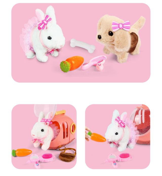 電子ペット 一緒にお散歩 わんちゃん 犬 動く おもちゃ いぬ 動くぬいぐるみ ウサギ イヌ ぬいぐるみ キャリーバッグ付き 動く犬 ウサギ おもちゃ 女の子 男の子 お世話 歩く 鳴く ペットロボット 可愛い 誕生日 プレゼント