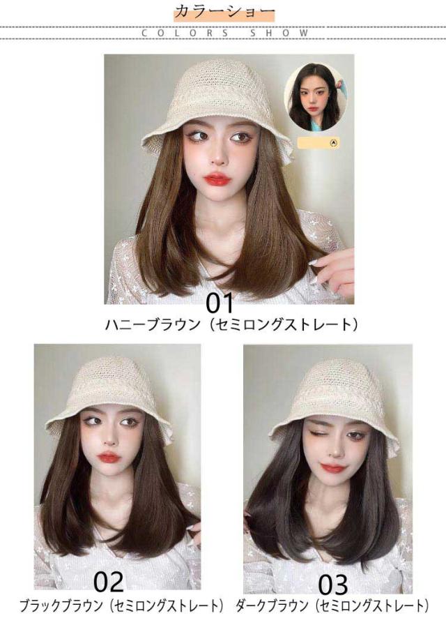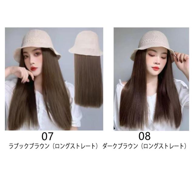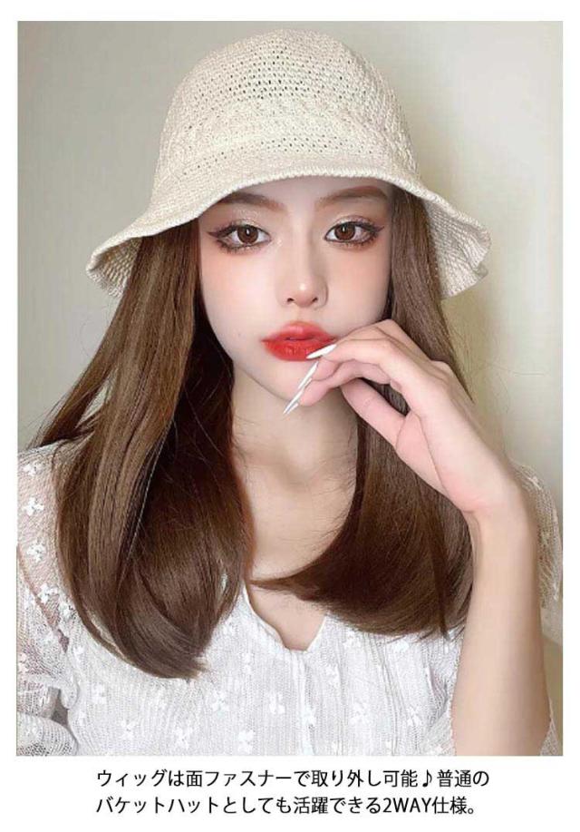 帽子ウィッグ ウィッグ付き 帽子 ボブ ストレート ウェーブ 毛付き帽子 医療用 かつら ウィッグ付き帽子 可愛い 髪付き かつら付き バケットハット 送料無料 春夏 通気性 つば広 セミロング ロング ウィッグ一体帽子