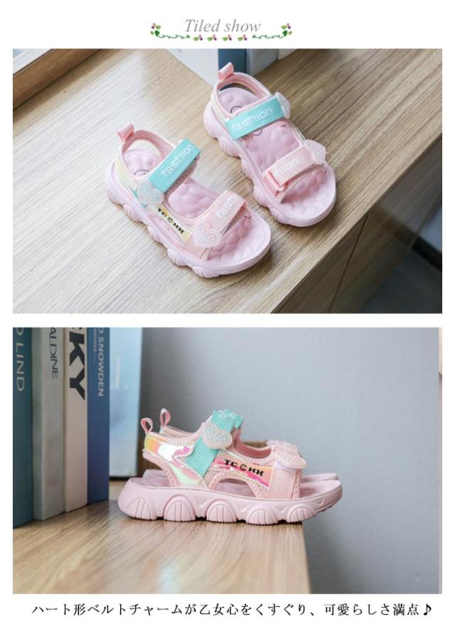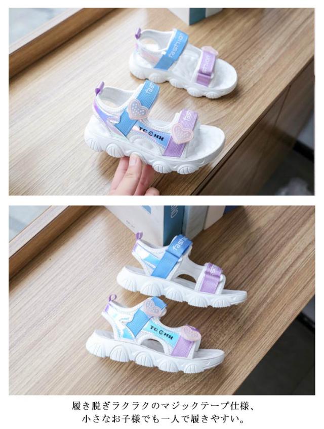 子供 スポーツサンダル キッズ 女の子 サンダル スポサン ビーチサンダル ジュニア 16.5-22cm 子供靴 軽量 可愛い ハート ベルクロ ストラップサンダル 柔らかい 通学 通園 10代 姫系 厚底 サンダル