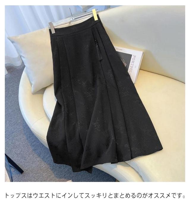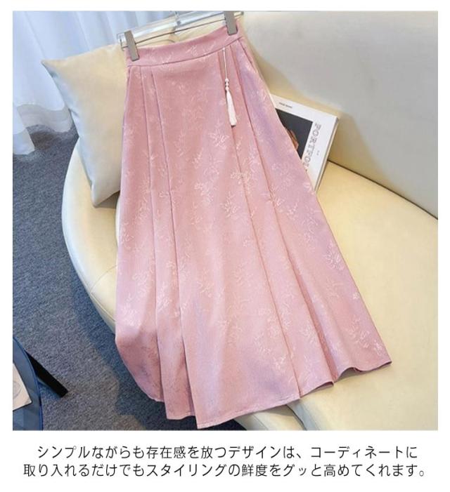タックスカート ロングスカート チャイナ風 スカート レディース 花柄 ジャガード織り ウェストゴム ミモレスカート 送料無料 Aラインスカート フリンジ タッセル 可愛い チャイナドレス スカート