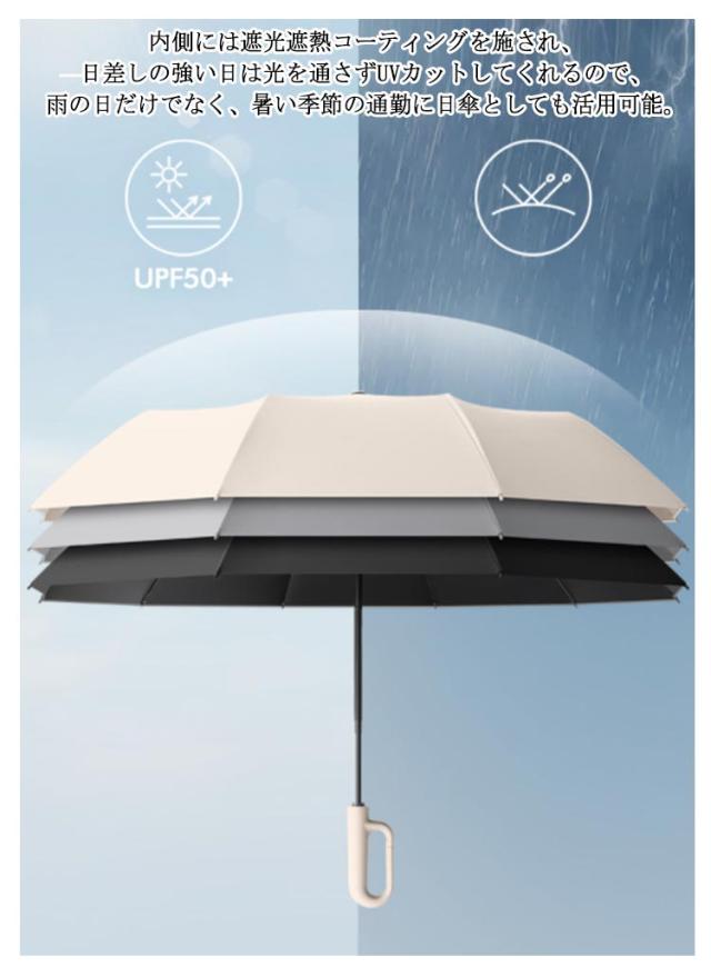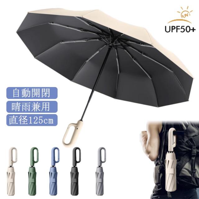 ワンタッチ 自動開閉 折りたたみ傘 日傘 雨傘 晴雨兼用 逆折りタイプ 逆さ傘 カラビナハンドル 折り畳み傘 軽い UVカット 紫外線遮断 日焼け対策 メンズ レディース 軽量 大きめ 超大きいサイズ 10本骨 頑丈 耐風 コンパクト 逆さま傘 防風 梅雨 遮光 直径125cm