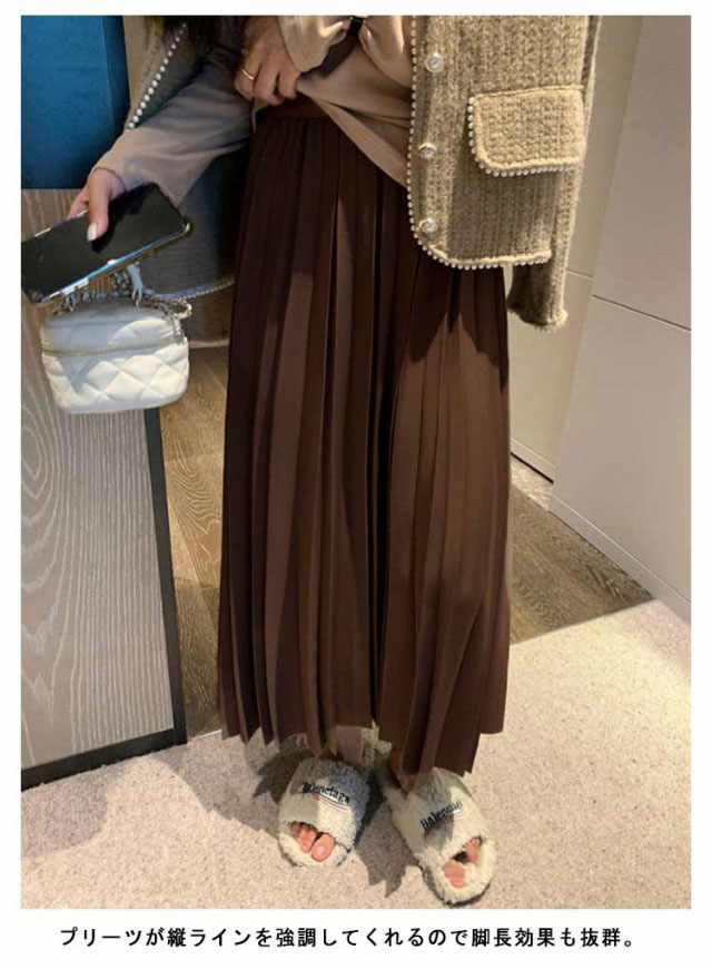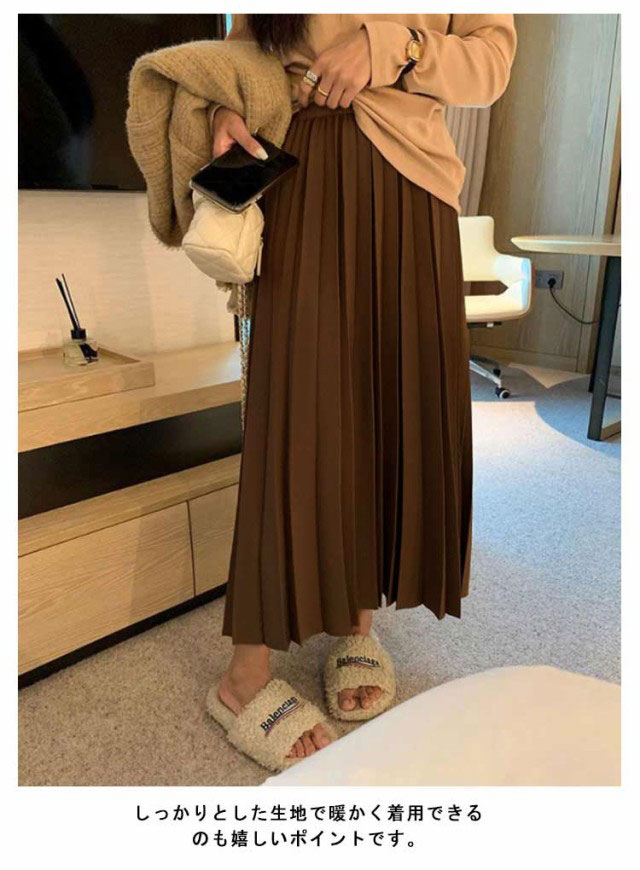 | カジュアルにもキレイめにも対応できる冬バージョンプリーツスカート登場♪ 秋冬にピッタリな素材で女性らしい柔らかい雰囲気を演出。 しっかりとした生地で暖かく着用できるのも嬉しいポイントです。 プリーツが縦ラインを強調してくれるので脚長効果も抜群。 様々なシーンにフィットする、きちんと感と軽やかさのバランスが魅力のアイテムです。 | |