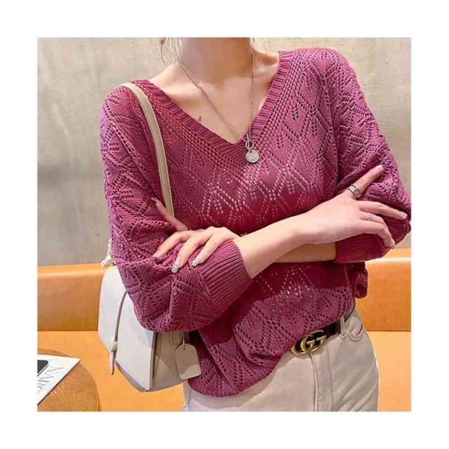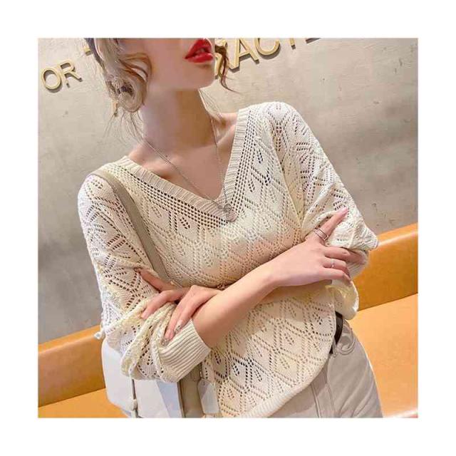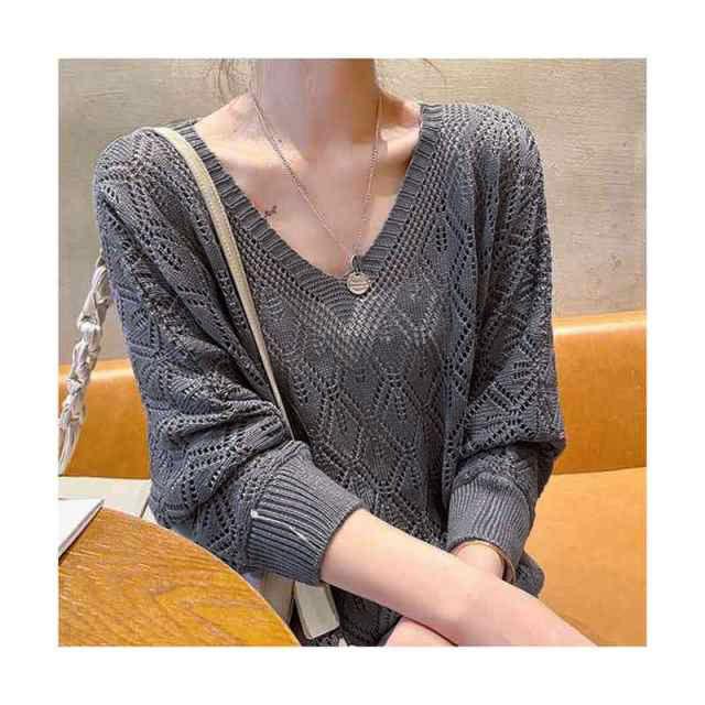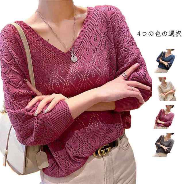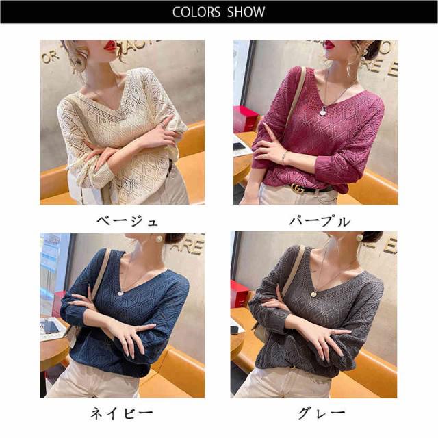 送料無料 ニットトップス サマーニット サマープルオーバー 透かし編み レディース 春夏 ブラウス vネック 透かし編み ニットプルオーバー レディース サマーニット ブラウス vネック 透け シアーニット シャツブラウス 薄手 ゆったり