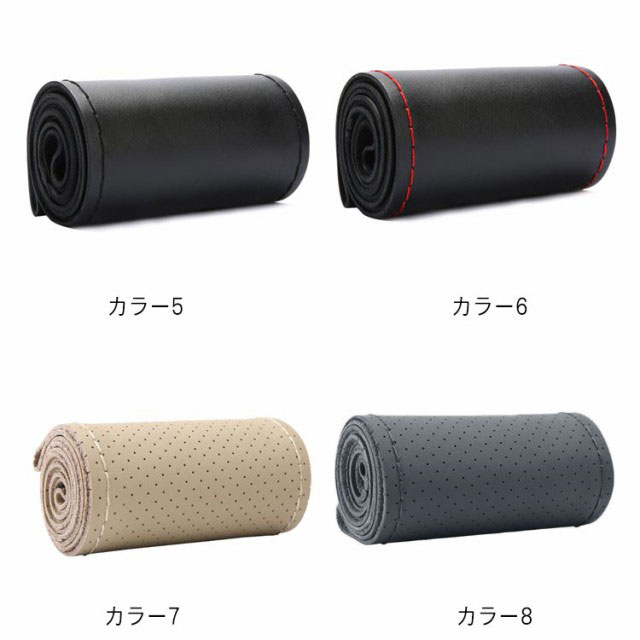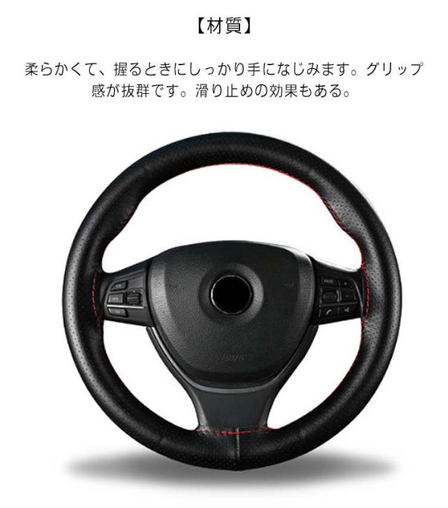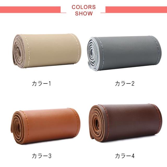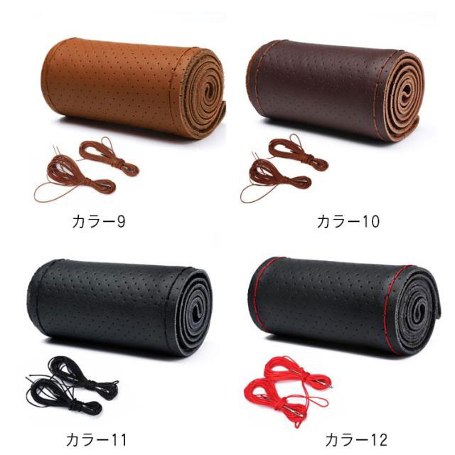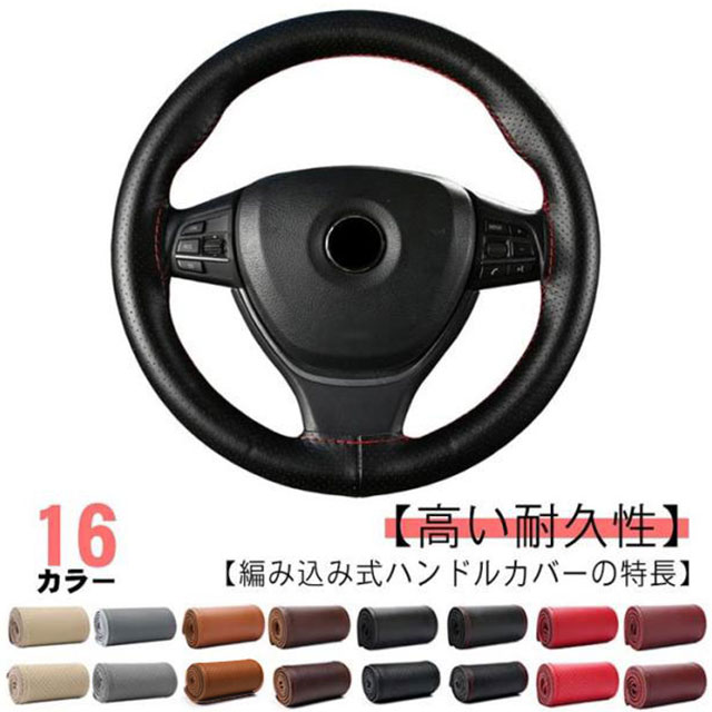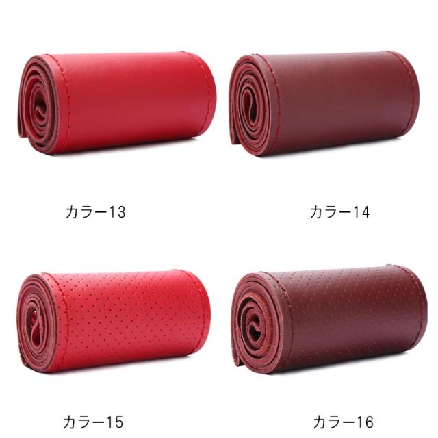 全16色!牛革 編み込み ステアリングカバー ハンドル ハンドルカバー 本革 編み上げ 手縫い レザー ステアリング カバー 無地 シンプル おしゃれ 滑り止め 軽量 薄手 耐摩耗 インテリア 車内用品 内装用 38cm