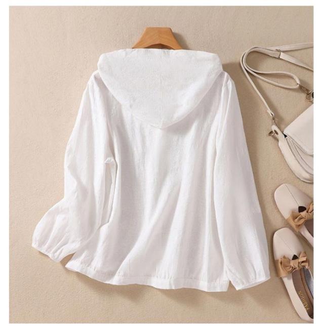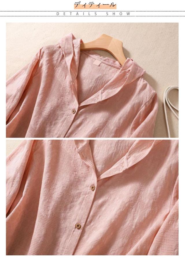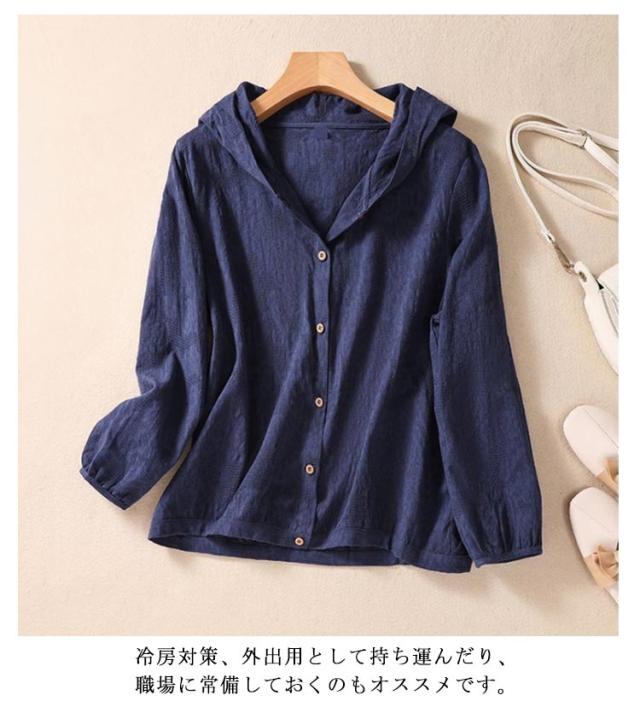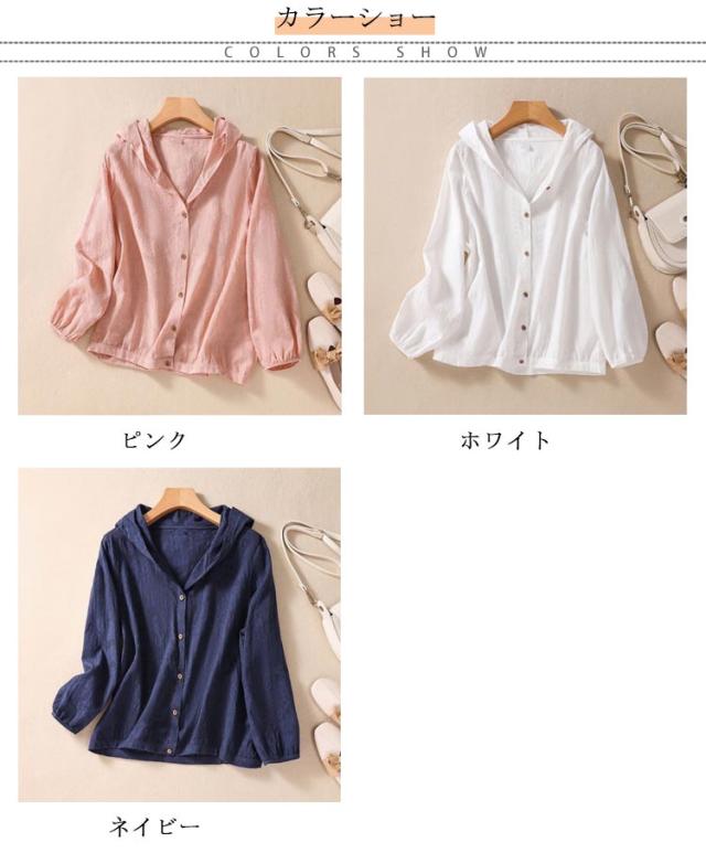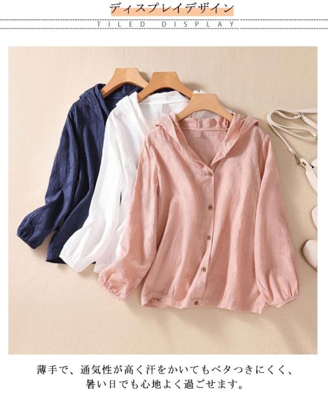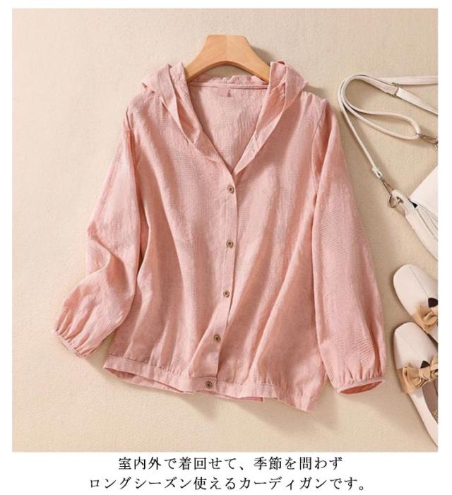 綿麻 カーディガン レディース 薄手 フード付き カーディガン サマージャケット UVカット 日焼け止め リネン コットン パーカー 長袖 薄手 冷房対策 日焼け対策 通勤 オフィス ラッシュガード 日よけ ホワイト ピンク ネイビー