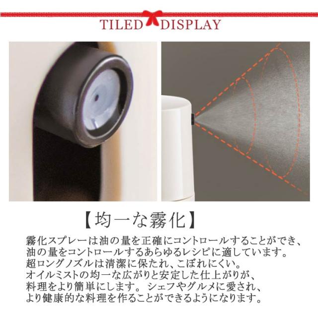 | 【均一な霧化】 霧化スプレーは油の量を正確にコントロールすることができ、油の量をコントロールするあらゆるレシピに適しています。 超ロングノズルは清潔に保たれ、こぼれにくい。 オイルミストの均一な広がりと安定した仕上がりが、料理をより簡単にします。 シェフやグルメに愛され、より健康的な料理を作ることができるようになります。 【透明なガラス製】 透明なガラス製なので、油の残量を簡単に確認することができます。 また、ガラスはプラスチックのように変形したり有害物質が出たりしにくく、人間工学に基づいたデザインで、使いやすさや煩わしさを感じさせない。 内部のポンプコアは、底に少なくなったオイルも吸引できるように設計しています。 【漏れ防止設計】 密閉性を高め、液漏れを防ぐリークプルーフデザインをアップグレードしました。 大口径のボトルは、漏斗を使わなくても食用油を簡単に入れることができます。 この必要不可欠なキッチンガジェットはとても便利で、ボタンを押し続けるだけで、細かいミストを噴出します。 【使いやすい】 スプレーボトルを押すだけで、ミストを細かく分散させ、スムーズなスプレー効果を得ることができます。 細かいミストを形成するため、オイルを均一に噴出することができます。 オイルスプレーを使うことで、油を入れすぎてしまうという失敗を避けることができます。 余分な油を使わず、おいしい料理が作れます。 【広く使われています】 透明なガラス製なので、プラスチック製に比べ、表面の手入れが簡単です。 サラダ、オムレツ、ステーキ、エアフライヤー、グリルで使用するのに適しています。 サラダ油やオリーブオイルのほか、酢、しょうゆ、ワイン、レモン汁などにも使える万能タイプ。 キッチンでの使用に最適です。 | |