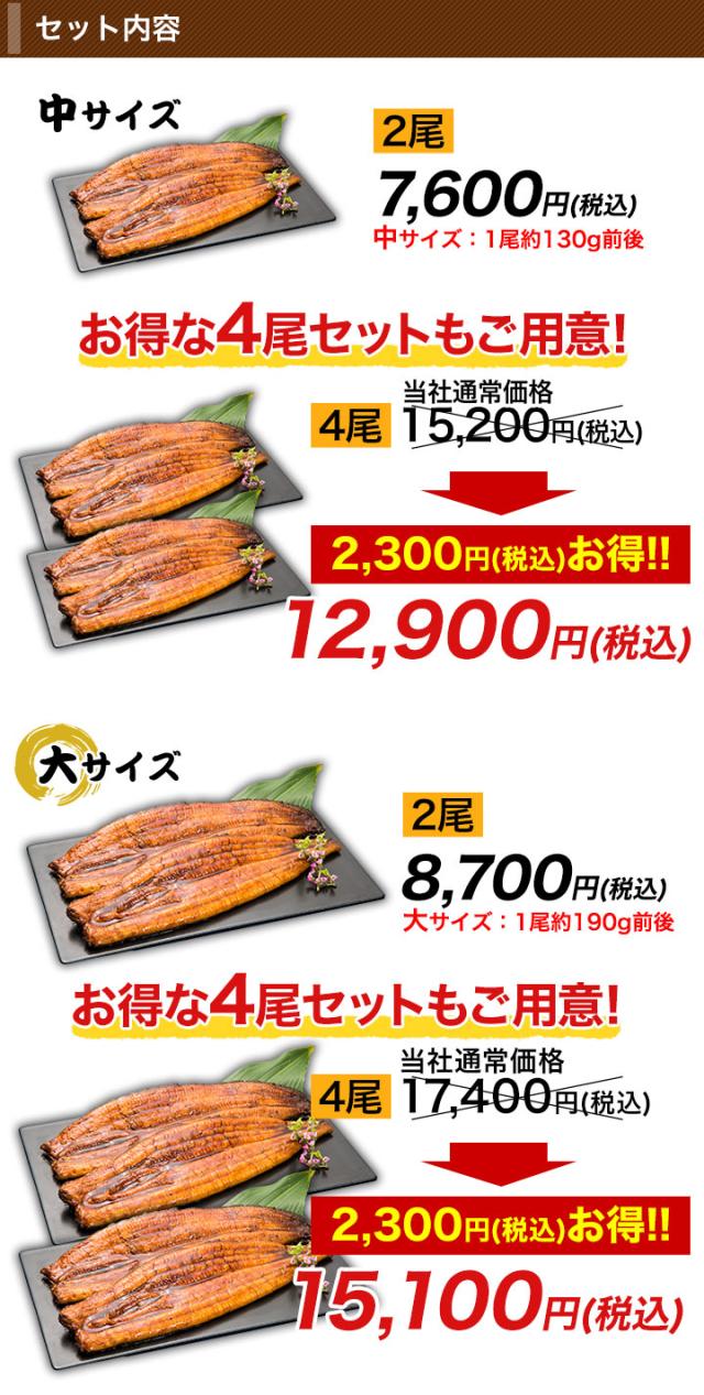中サイズ:1尾約130g前後大サイズ:1尾約190g前後(1)中サイズ 2尾(2)中サイズ 4尾(3)大サイズ 2尾(4)大サイズ 4尾